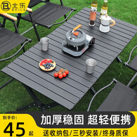 北乐户外折叠桌便携式露营桌子野餐桌椅套装野营野炊装备铝合金蛋卷桌 黑色方桌+收纳袋