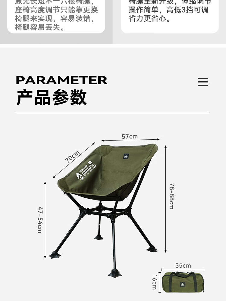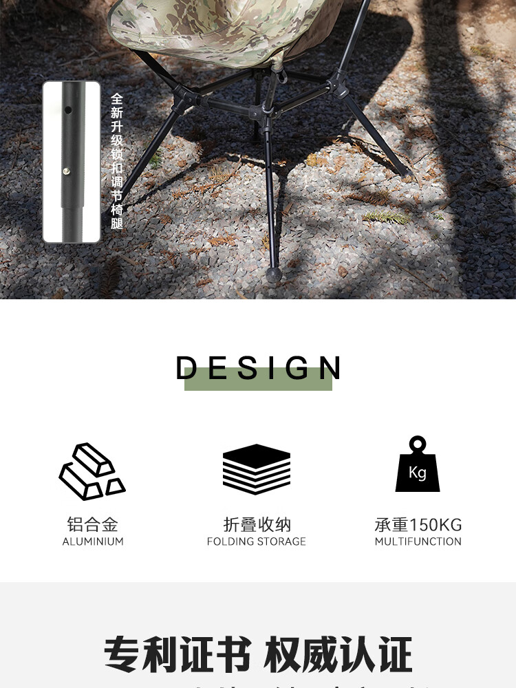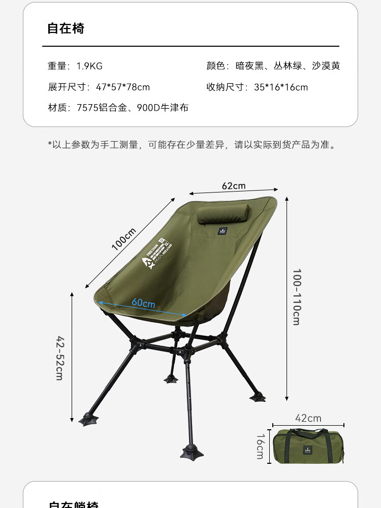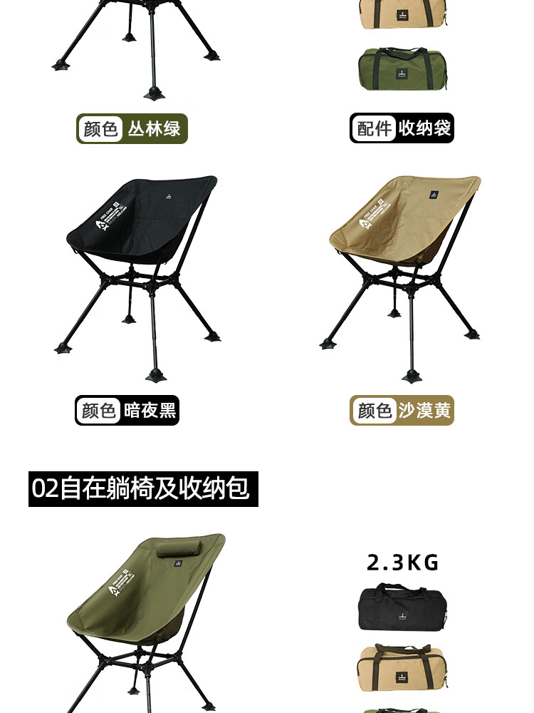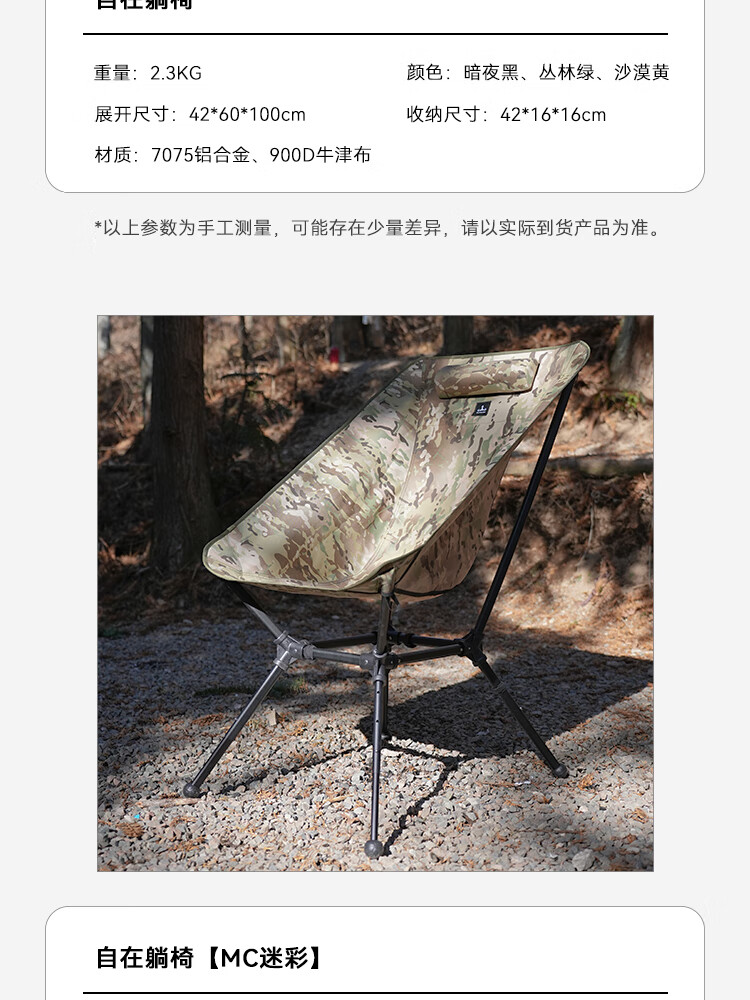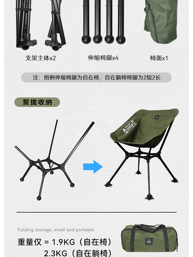 迪飞客自在椅露营坐躺两用月亮椅户外钓鱼折叠椅子铝合金可躺轻量化摩旅 丛林绿【自在躺椅】7系航空铝/900D牛津布