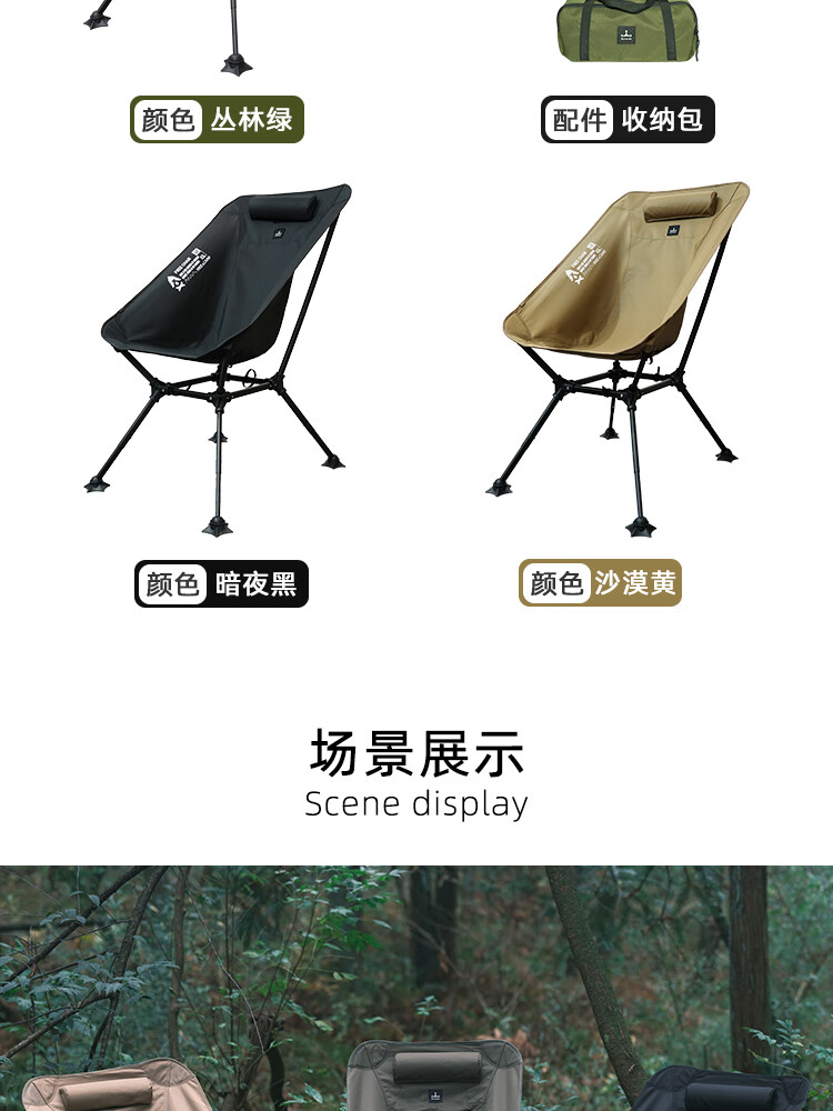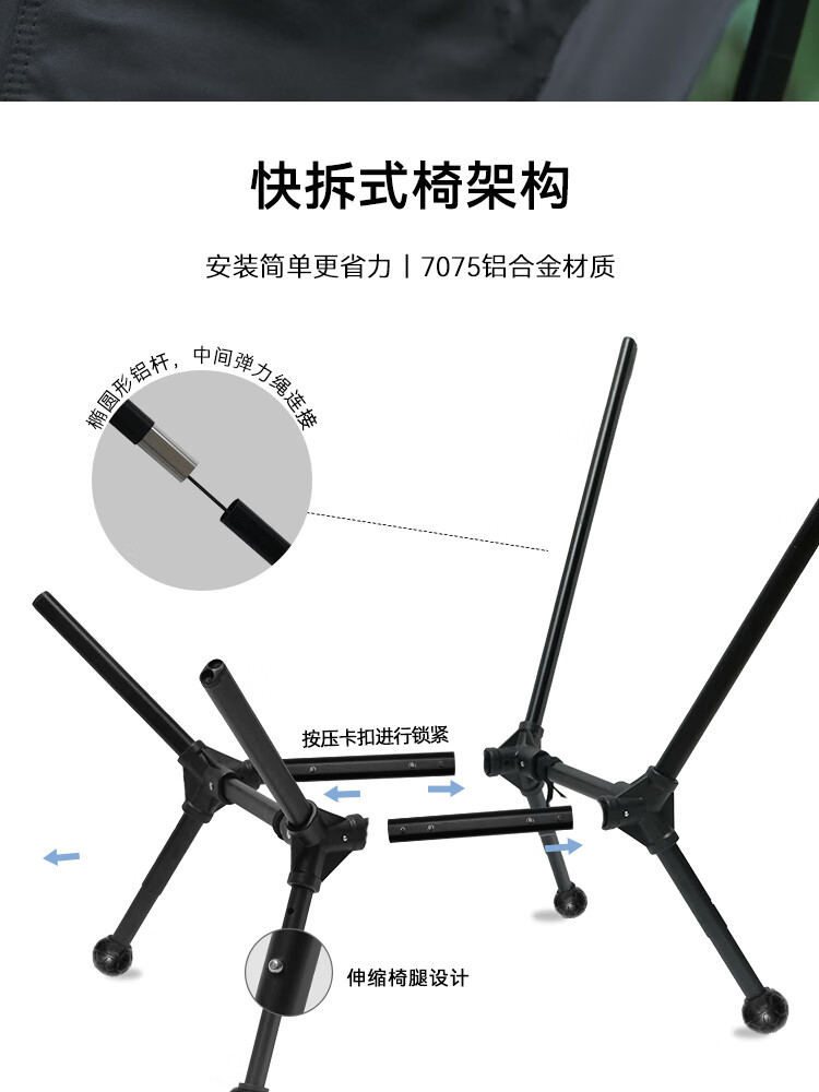 Naturehike挪客便携折叠月亮椅 户外露营休闲办公超轻铝合金钓鱼导演沙滩椅 黑色