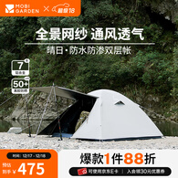 牧高笛(MOBIGARDEN)晴日 户外徒步露营防晒防风防雨双层透气铝杆三季帐篷 【黑胶款】三人-象牙白
