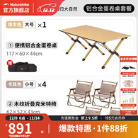 挪客Naturehike星简铝合金蛋卷桌户外露营野营便携式轻量化折叠桌子 4人全铝桌椅(大号桌+小号椅)