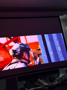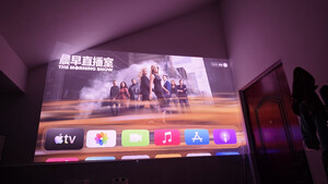 这款投影仪外观大气且细节做工扎实,云台移动丝滑。亮度提升明显,开灯状态下也能正常观影,色彩鲜艳、对比度高。