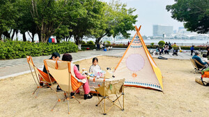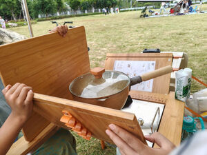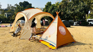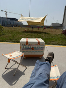 颜值很高,收纳也很方便,全部收在一箱中,再加上一个穹顶,配齐一套完整的野餐露营地设备,成为一道亮丽的风景,吸引了很多人前来询问。