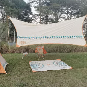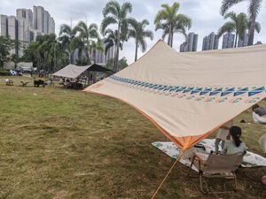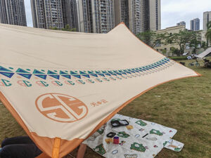 天幕覆盖范围广泛,搭建简便。我们今日使用天幕,度过一天,未出现倾倒倾斜。适合在草坪地露营,容纳8至10人,天幕舒适,躺卧于下方,感受微风,体验极佳,便携性极佳,可以将整套露营设施收纳到箱子里。