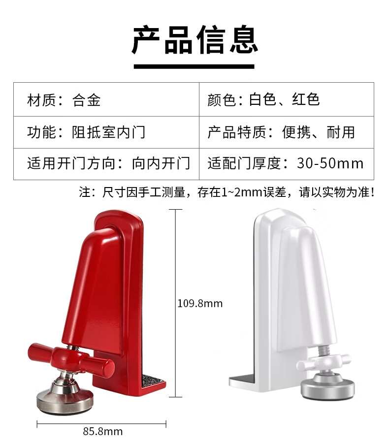 赟娅酒店防盗阻门器安全防狼神器顶门器防身防狼门挡门锁防撬门 红色阻门器
