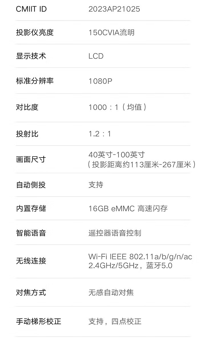 用了一段时间,总体非常满意。亮度清晰度在晚上卧室完全够用,操作简单,连上Wi-Fi就能看。自动对焦和梯形校正很省心,我是侧投,也能快速调正画面。音质也不错,小米的系统用着顺手,投屏方便。这个价位能买到这样的投影仪,性价比真的高!租房党、卧室观影党强烈推荐