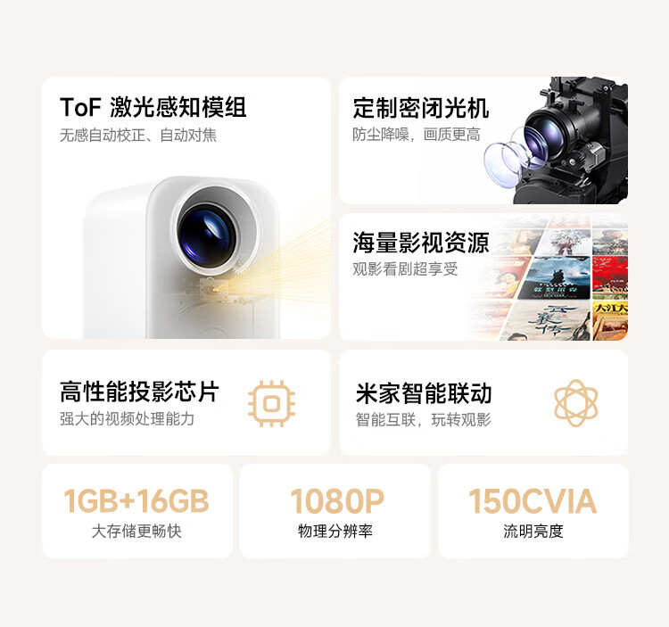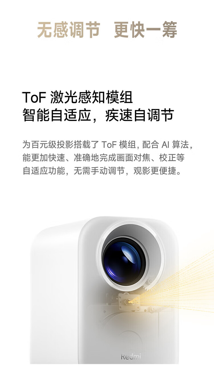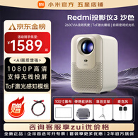 小米Redmi投影仪3 家用小型便携投影机智能家庭影院ToF无感对焦无感对焦校正 瑞利音效1080P物理分辨率 Redmi投影仪3 沙色【32GB 无感自动校正】