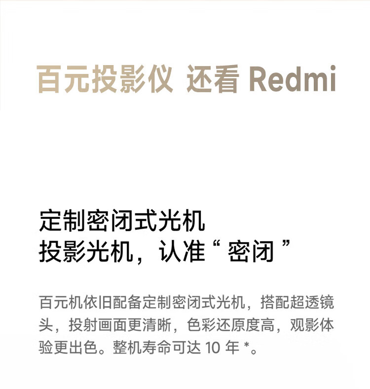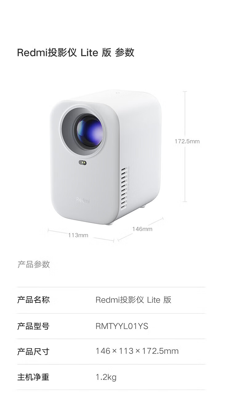 小米Redmi投影仪家用投影机 智能家庭影院高清1080P投影仪 无感对焦无感校正智能避障办公家用远场语音 Redmi投影仪Lite【自动对焦、智能矫正】