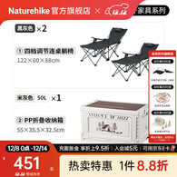 Naturehike挪客暮望聚拢式连桌躺椅午休户外露营午睡钓鱼可坐可躺沙滩折叠椅 双人椅套装黑灰*2+折叠箱