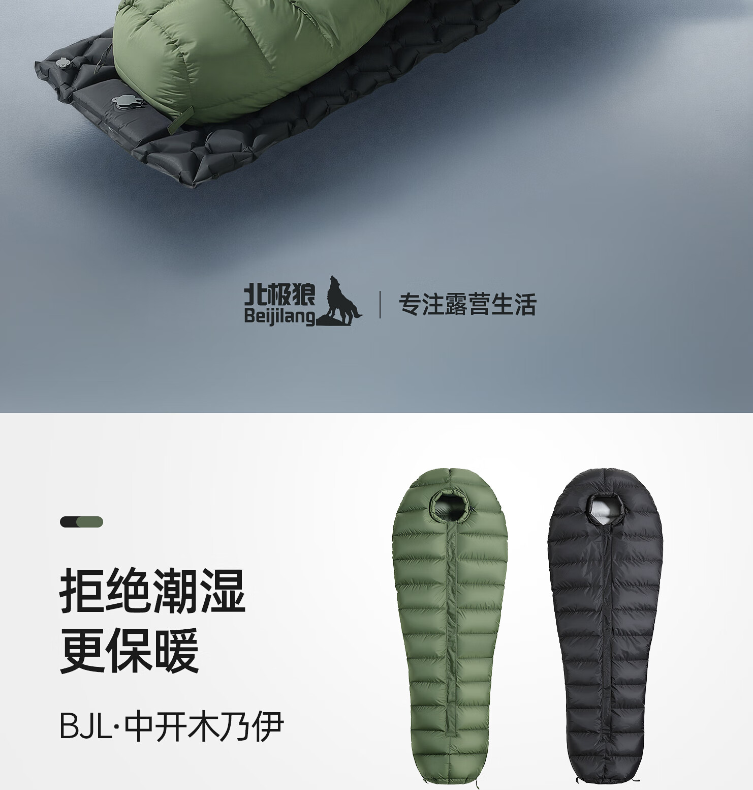 北极狼(BeiJiLang)羽绒睡袋成人户外露营冬季防寒加厚零下30度中开便携式木乃伊睡袋 1000g/黑色-中开鹅毛羽绒木乃伊睡袋【5℃至-12℃】