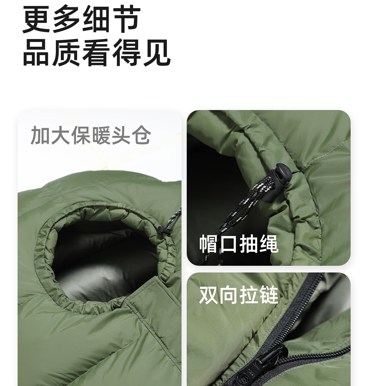 中开的设计使用起来非常方便,亲测保暖性很好,是真羽绒的,没有异味,保暖性非常好,能睡出汗