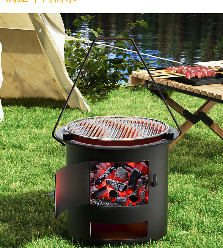 烧烤炉便携,炭火烤串煮茶都合适,户外用太香了!