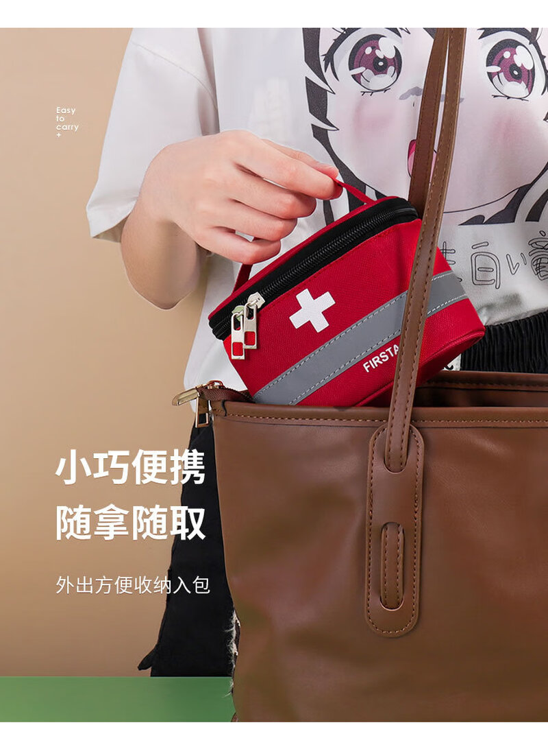 药品收纳袋家庭旅行急救包防疫包儿童健康包开学户外应急随身包袋 红色小号