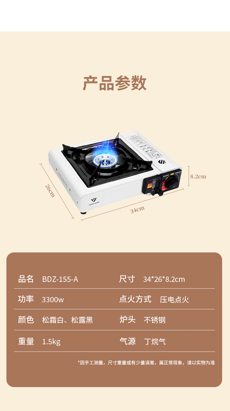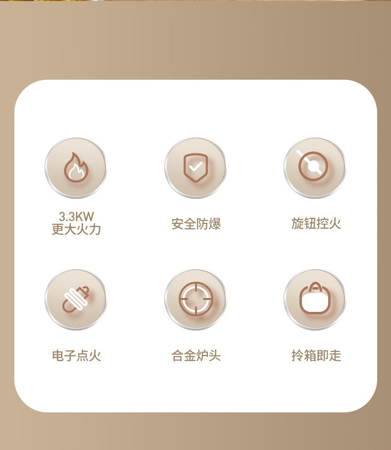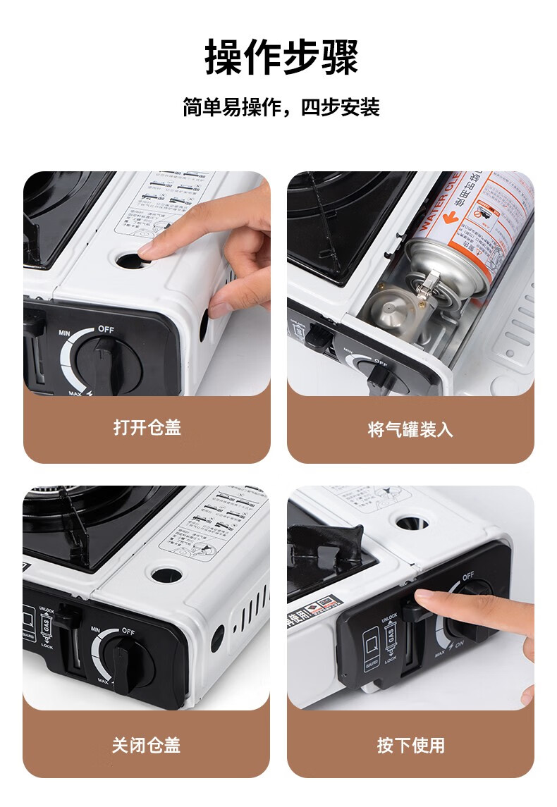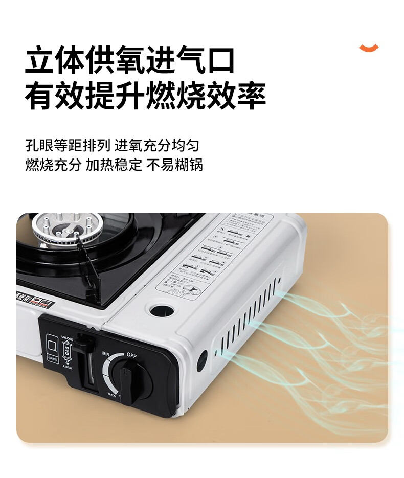 "这款卡式炉设计简洁实用,火力稳定且易于调节,为户外烹饪提供了便利。它的便携性和安全性令人印象深刻,是露营野餐的理想选择。"