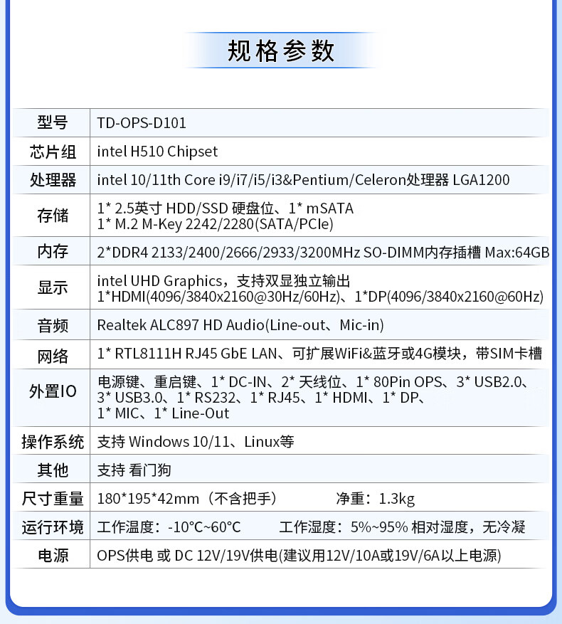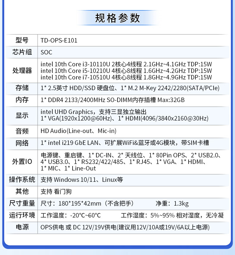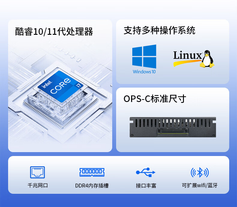 天迪工控天迪工控10/11代OPS插拔式电脑模块会议一体机主机4K数字多媒体 OPS-E101/低功耗处理器 i7-10510U/16G/512G
