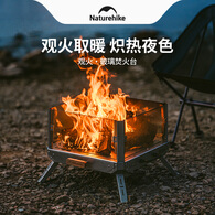 NatureHike挪客焚火台户外露营不锈钢烧火架子便携折叠篝火架围炉煮茶烤火 观火玻璃焚火台/不锈钢本色