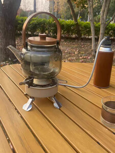 炉子比三脚的小炉头要稳定一些,点火的地方也很方便。水壶买1.6升的就对了,基本上够3、5个人慢慢喝茶,泡2、3桶方便面。