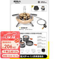 原始人户外炉头便携式卡式炉气化炉野外露营野炊烧烤炉 五芯猛火炉+3锅1壶(送餐具)