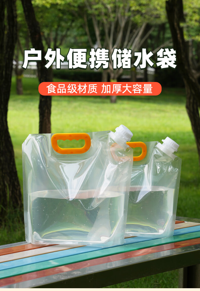 户外水袋水囊水袋户外饮水水袋大型装手机的袋子便携户外储水袋可折叠水囊大容量车载水袋露营应急装水塑料袋 5L水袋(可装10斤水)