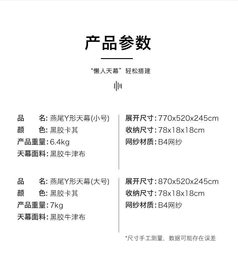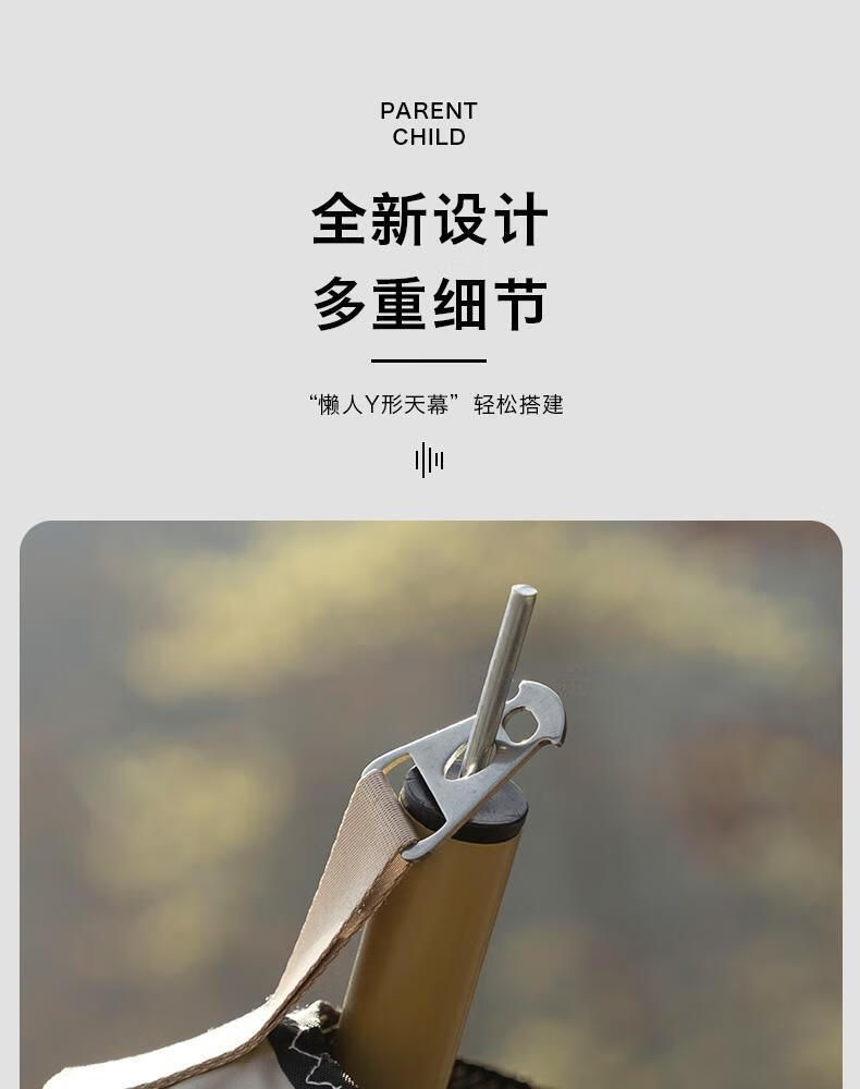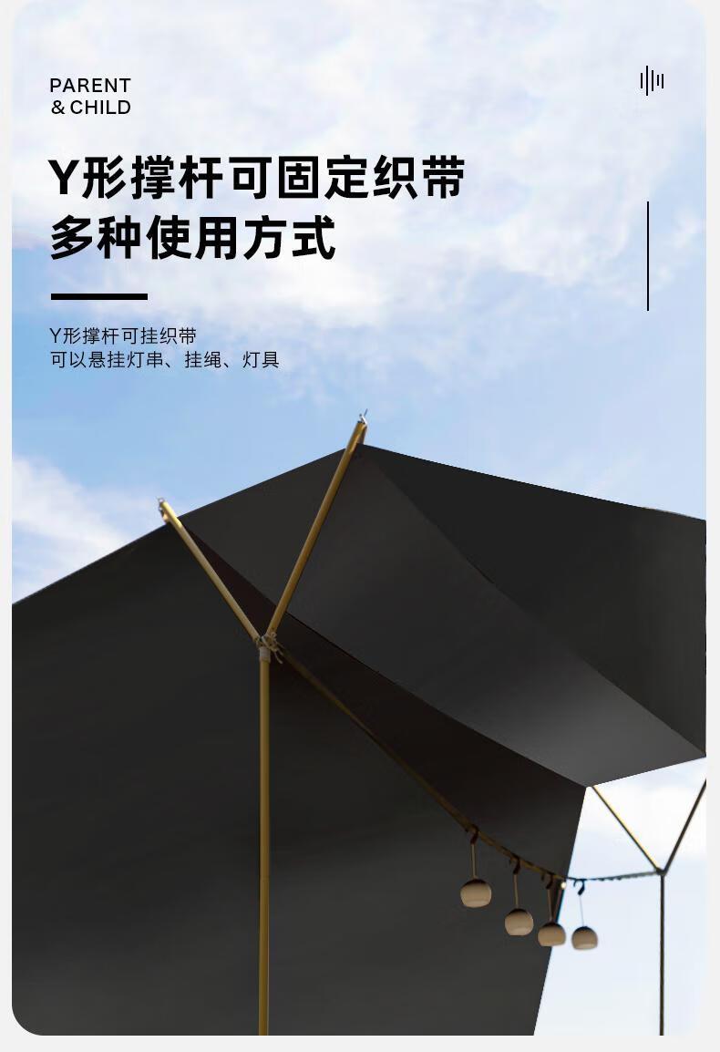 探险者无风绳免搭建懒人Y杆黑胶天幕遮阳棚防晒户外露营装备全套 Y杆燕尾大号