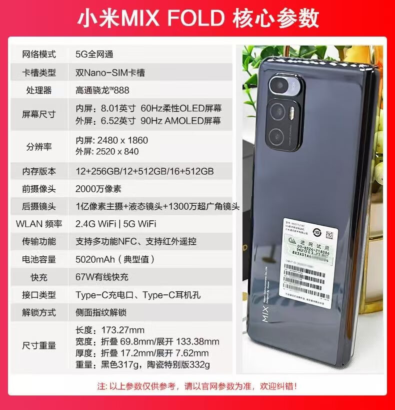 MIX FOLD 小米折叠屏手机