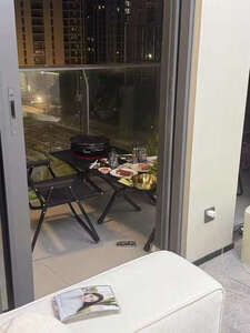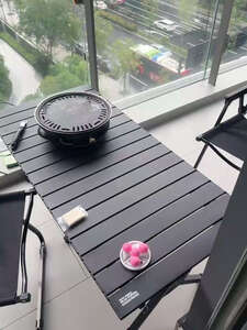 还没机会出去露营,先放在阳台上使用,看看风景吃吃饭喝喝茶什么的,比单独陪一套室内桌椅便宜太多,还轻便,收纳方便,桌面板材又防火,不怕风水日晒,很适合,颜色做得也高级