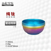 钛途(TITO TITANIUM)纯钛碗露营宝宝儿童吃饭碗双层饭碗户外碗防烫防摔钛碗家用碗新款 纯钛碗-小号-冰花蓝边炫彩