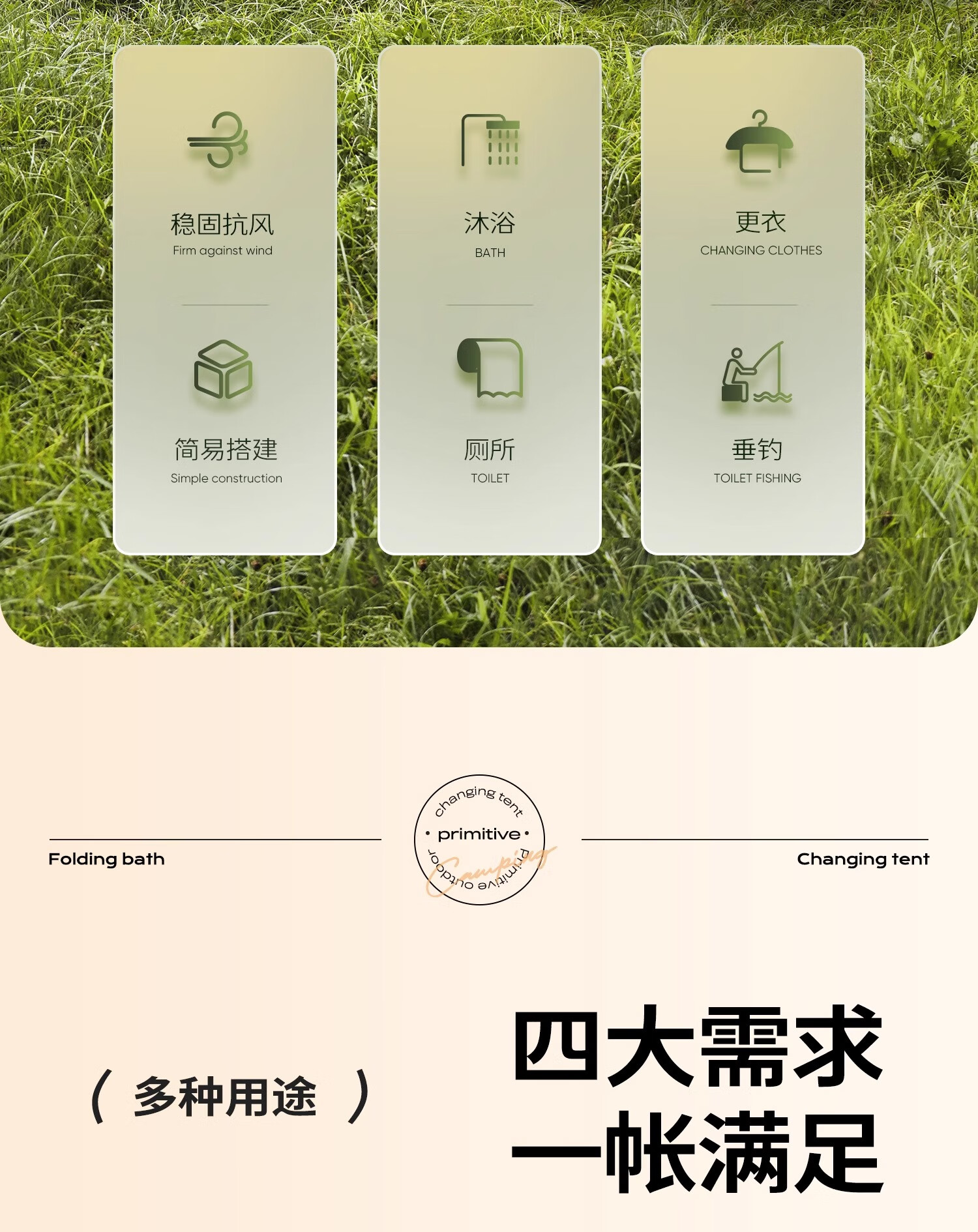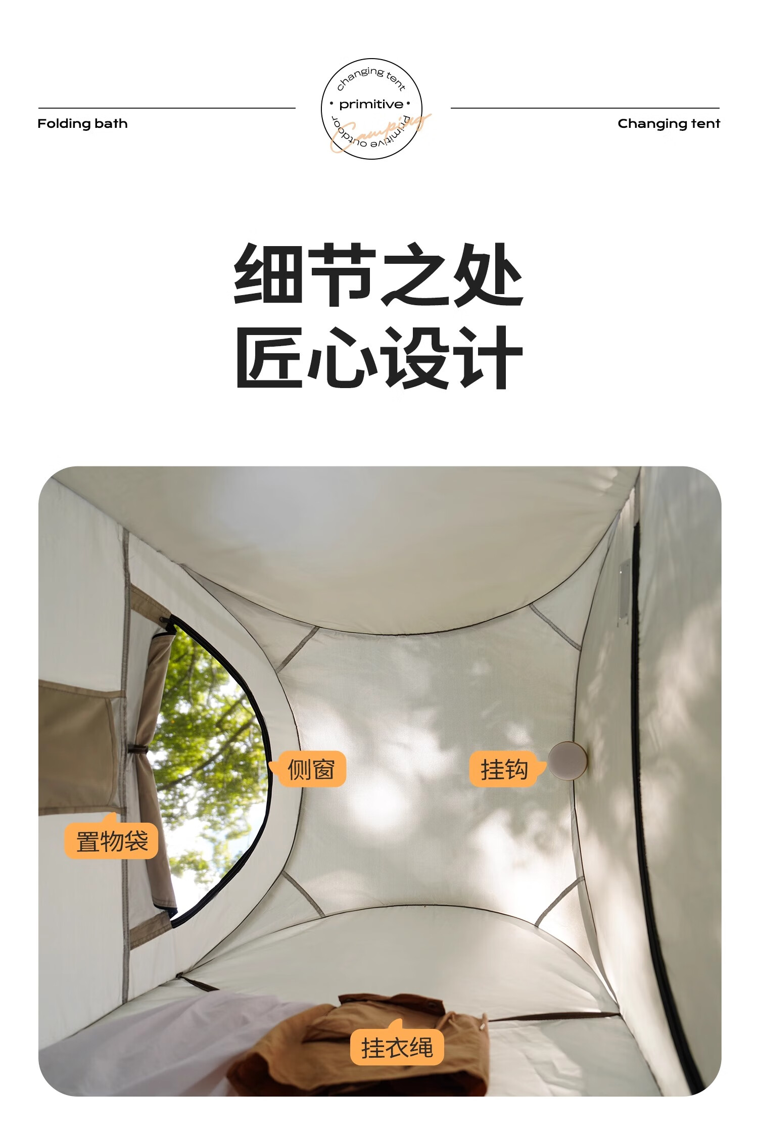 原始人(The Primitive)户外更衣帐篷洗澡便携式露营移动厕所淋浴换衣服游泳换衣罩 深咖色