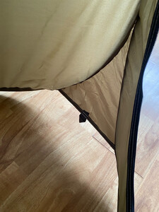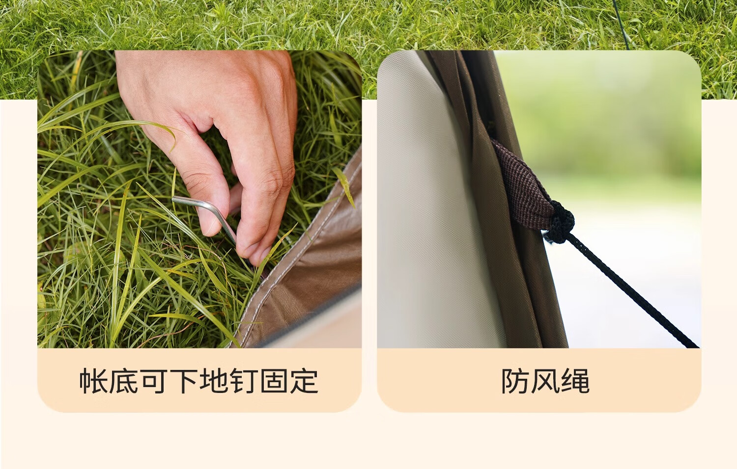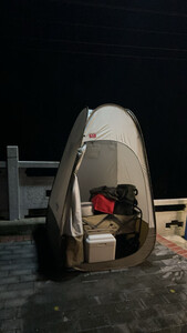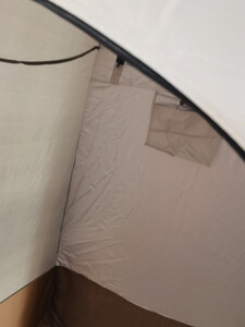 装备单体有分量,展开之后是一个大约1平方左右的空间,还带有一个窗户透气性好。整体侧拉链设计是非常满意的。材质非常坚固,即使在三四级大风中也能稳力不倒。之前下雨刮大风用了一次,防风绳固定好后无后顾之忧了,很好地解决了在户外露营上厕所不方便的情况。