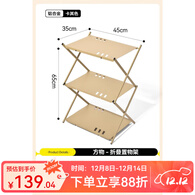 原始人户外置物架露营黑化铝合金可变形折叠桌子多功能便携式两用 三层卡其色【可两用】赠收纳袋