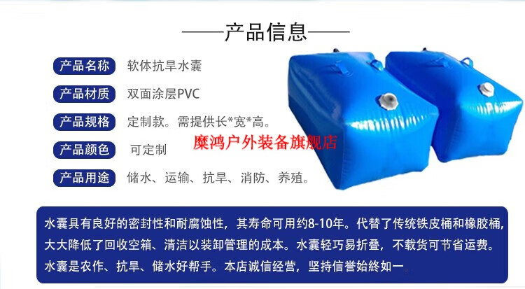 糜鸿(MIEHONE)软体水袋 水囊新款定制大容量户外大型加厚车载可折叠储水袋 定制尺寸联系客服