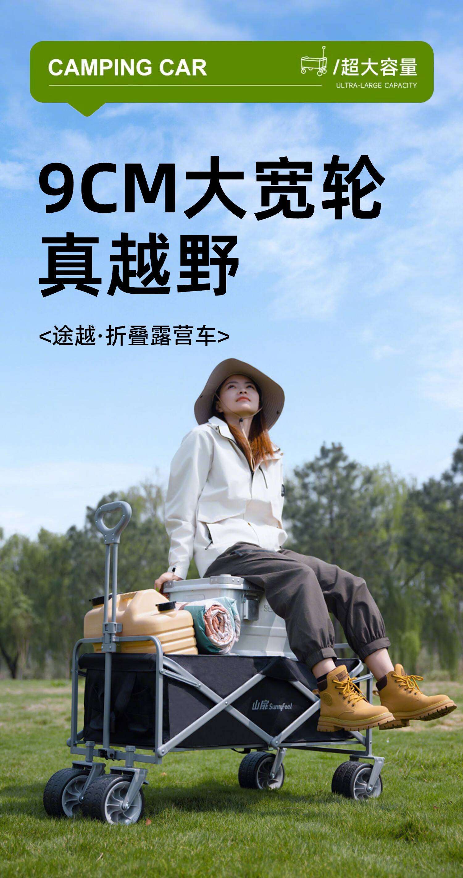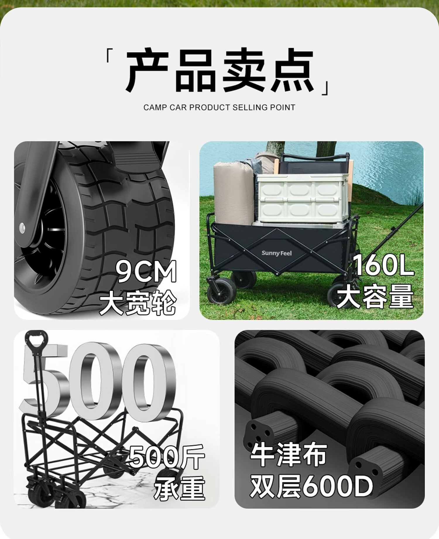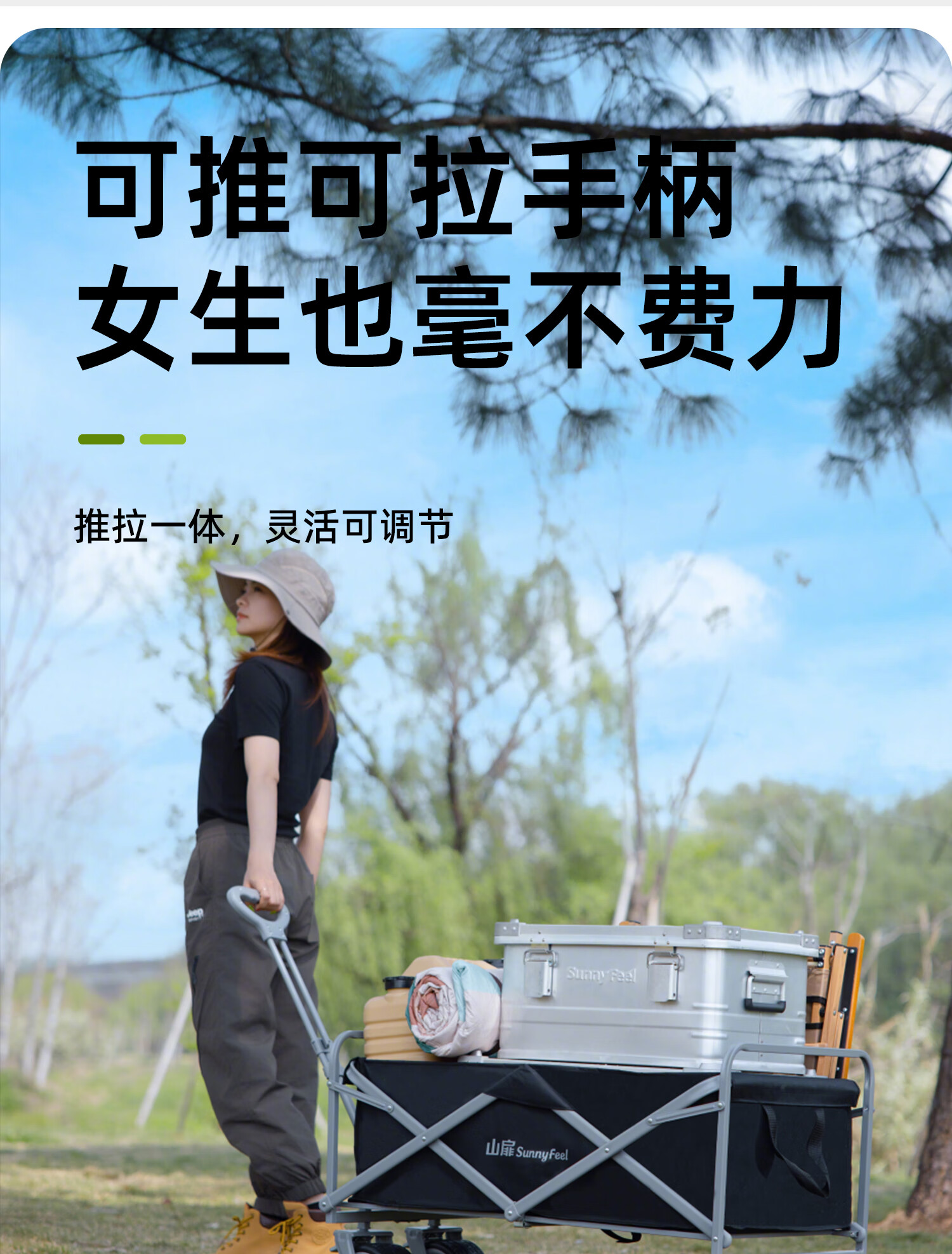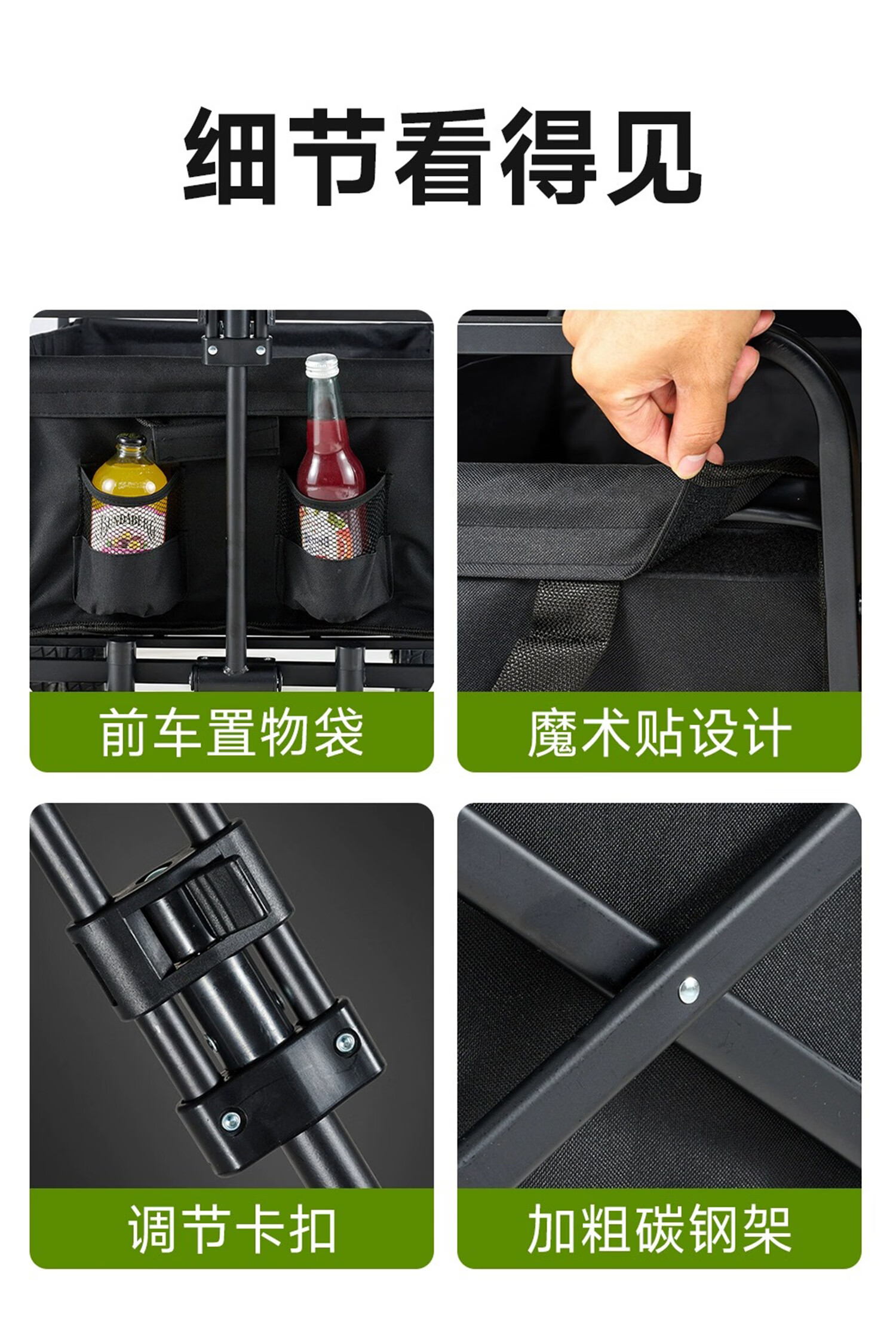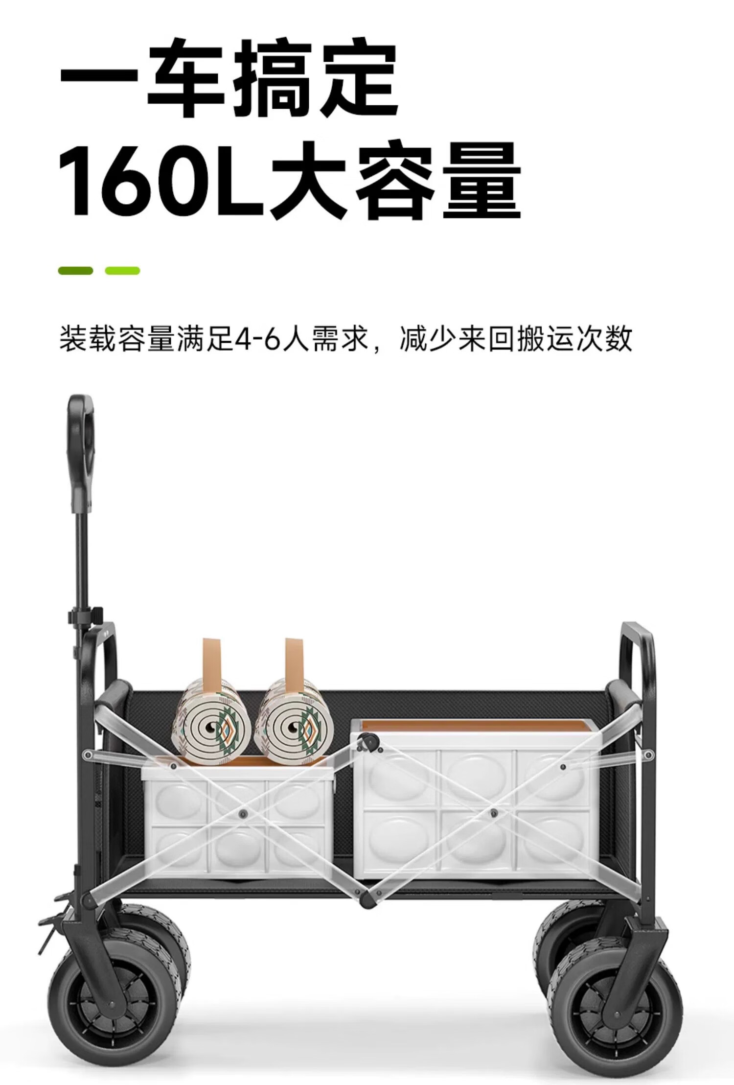 山扉露营车推车户外可折叠营地车儿童可躺野营小拖车野餐手推车 160L加大静音款曜石黑【加大静音万向轮】