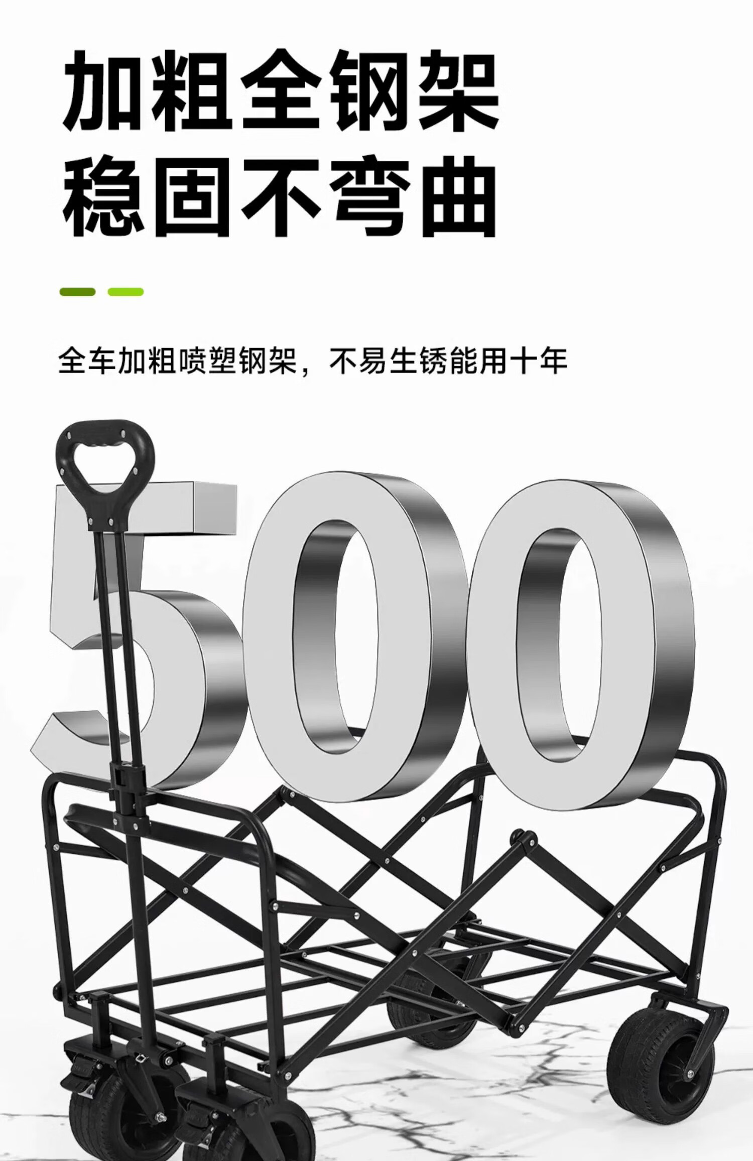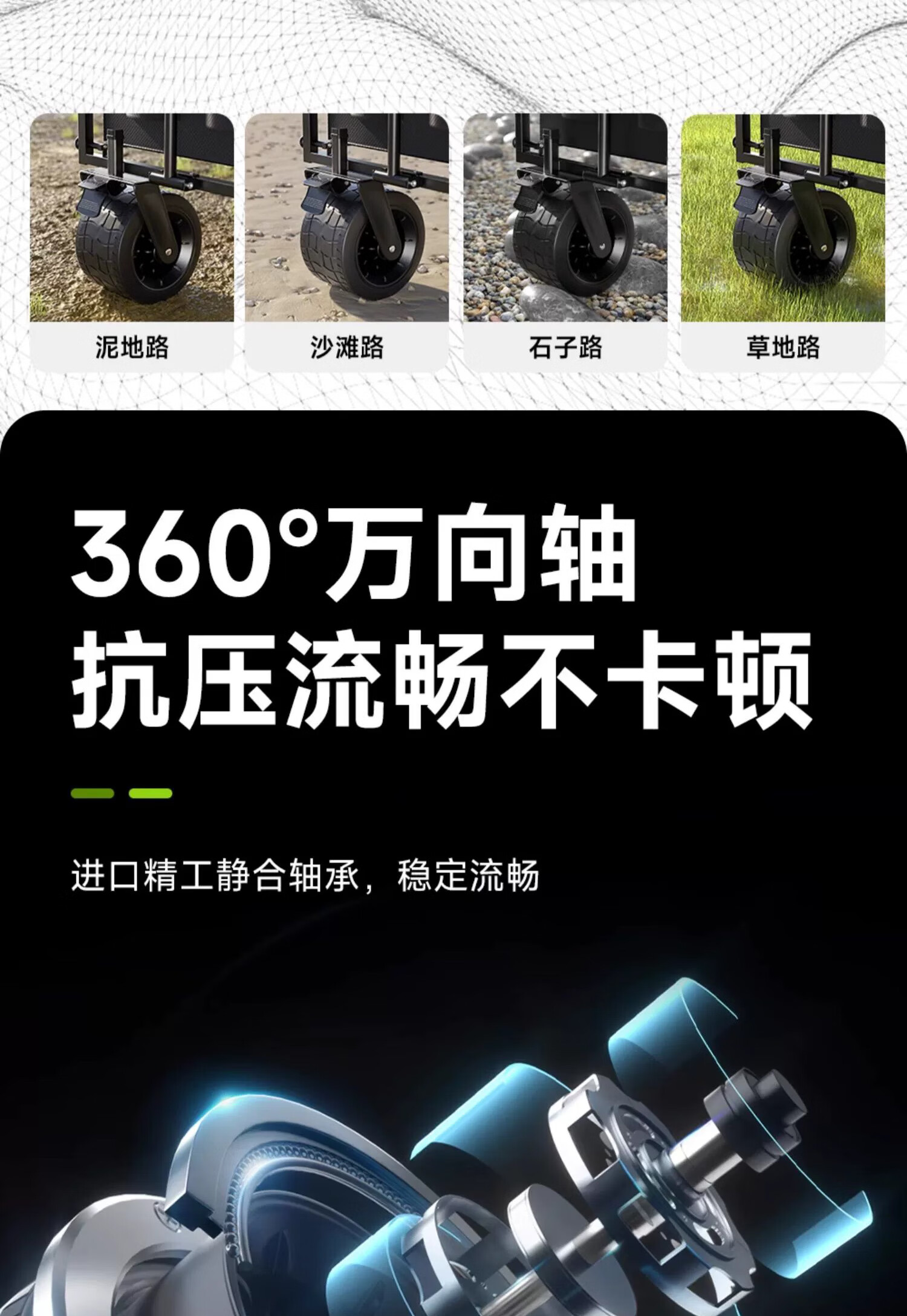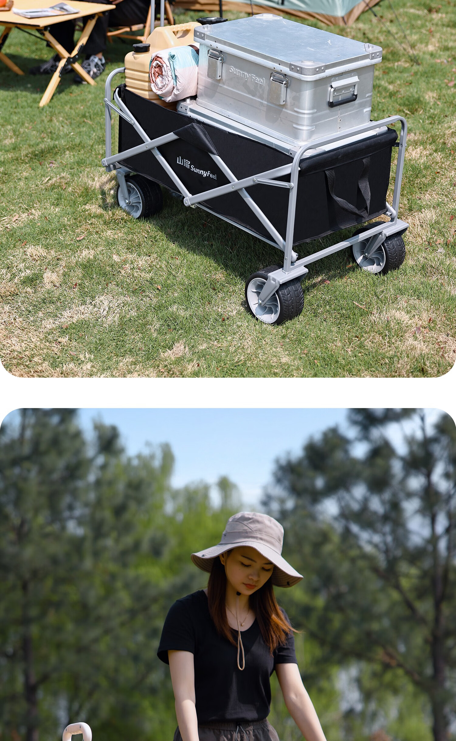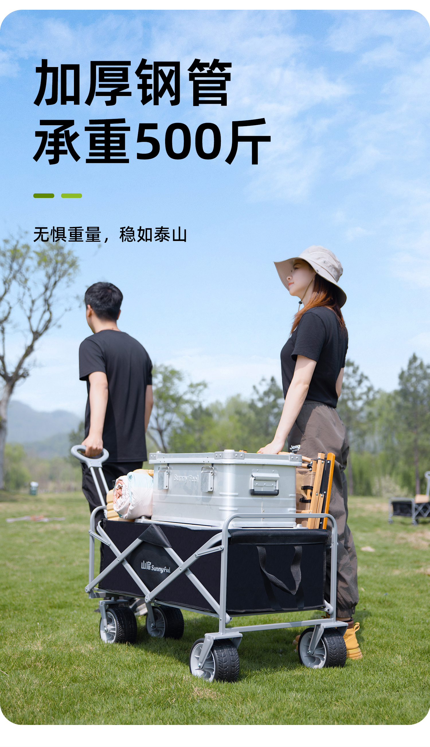 山扉露营车推车户外可折叠营地车儿童可躺野营小拖车野餐手推车 160L加大静音款曜石黑【加大静音万向轮】
