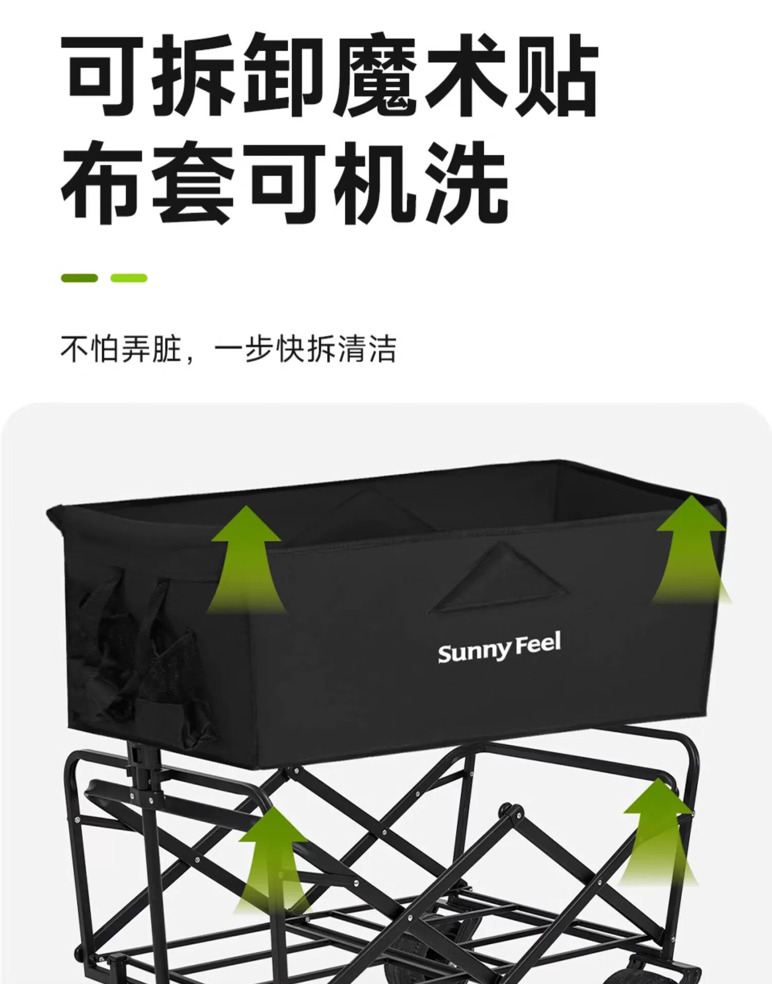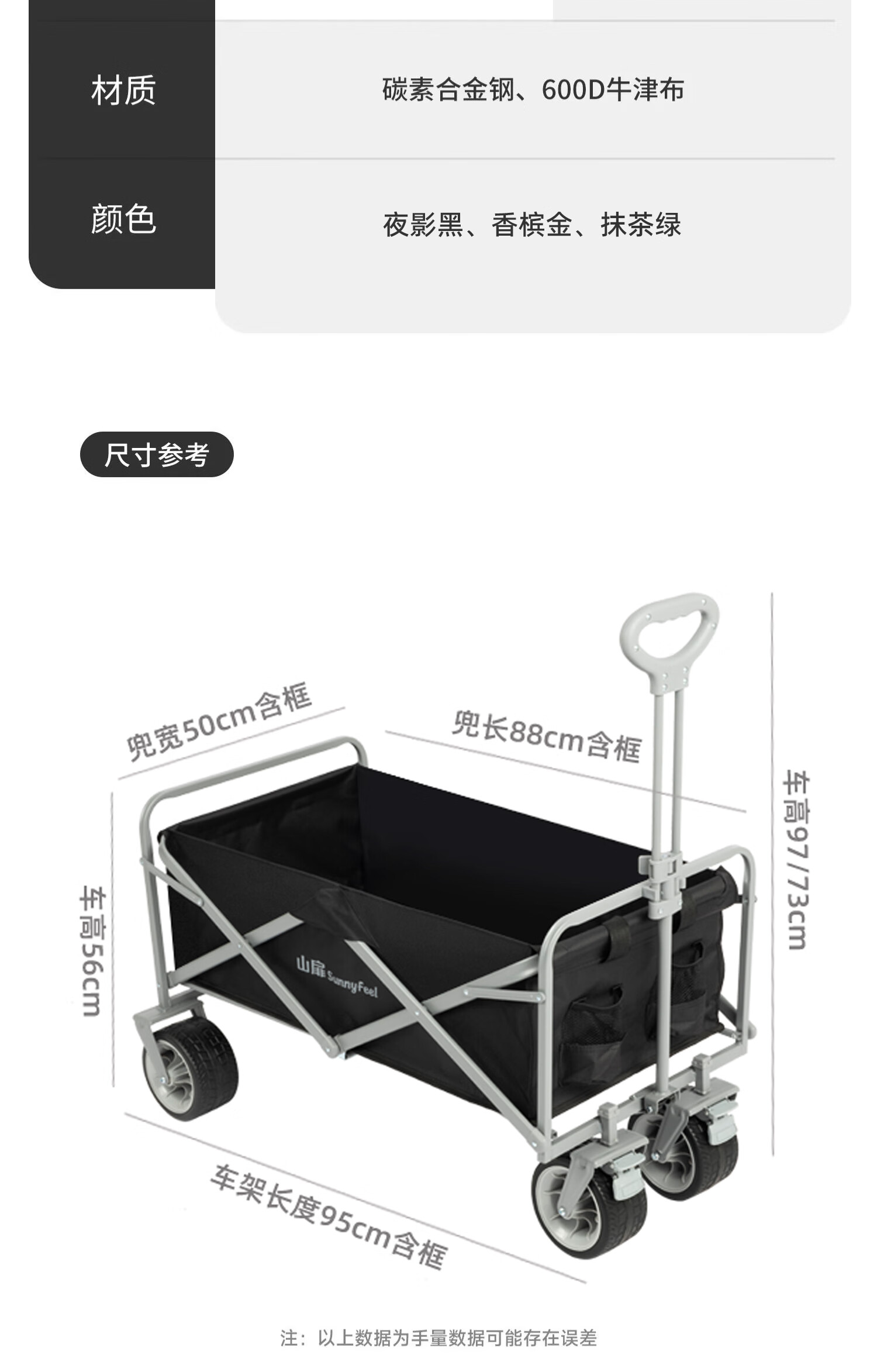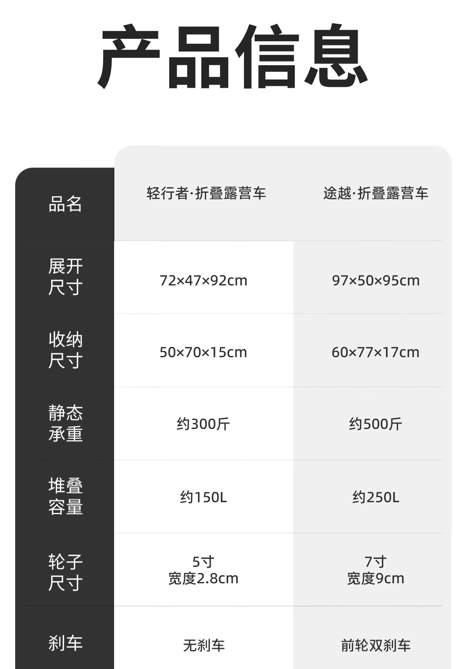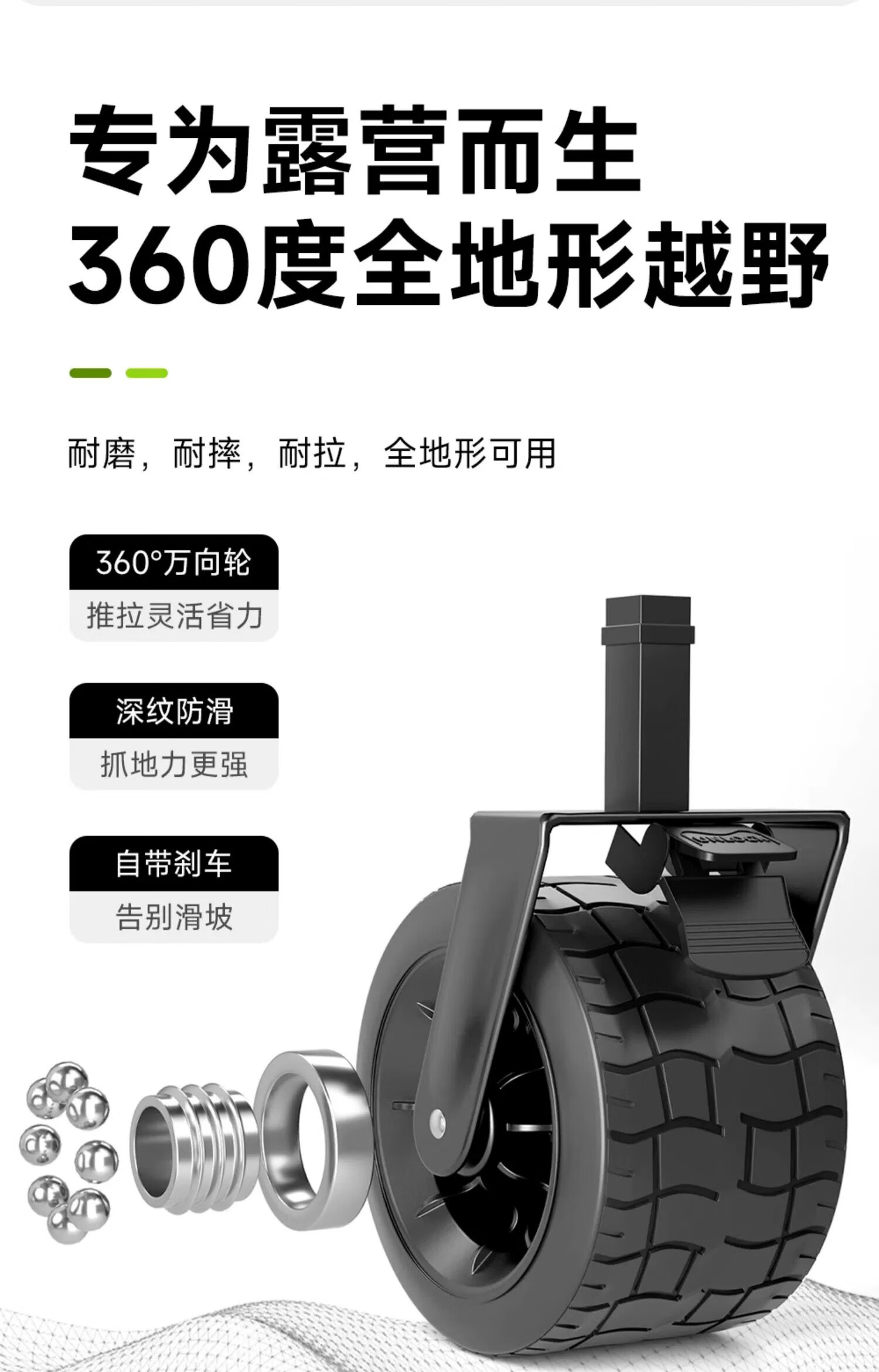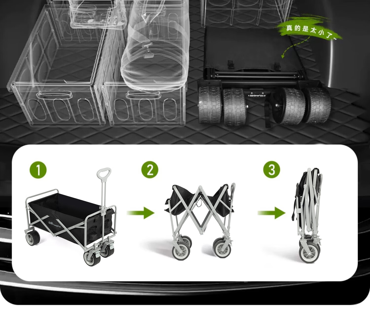 山扉露营车推车户外可折叠营地车儿童可躺野营小拖车野餐手推车 160L加大静音款曜石黑【加大静音万向轮】