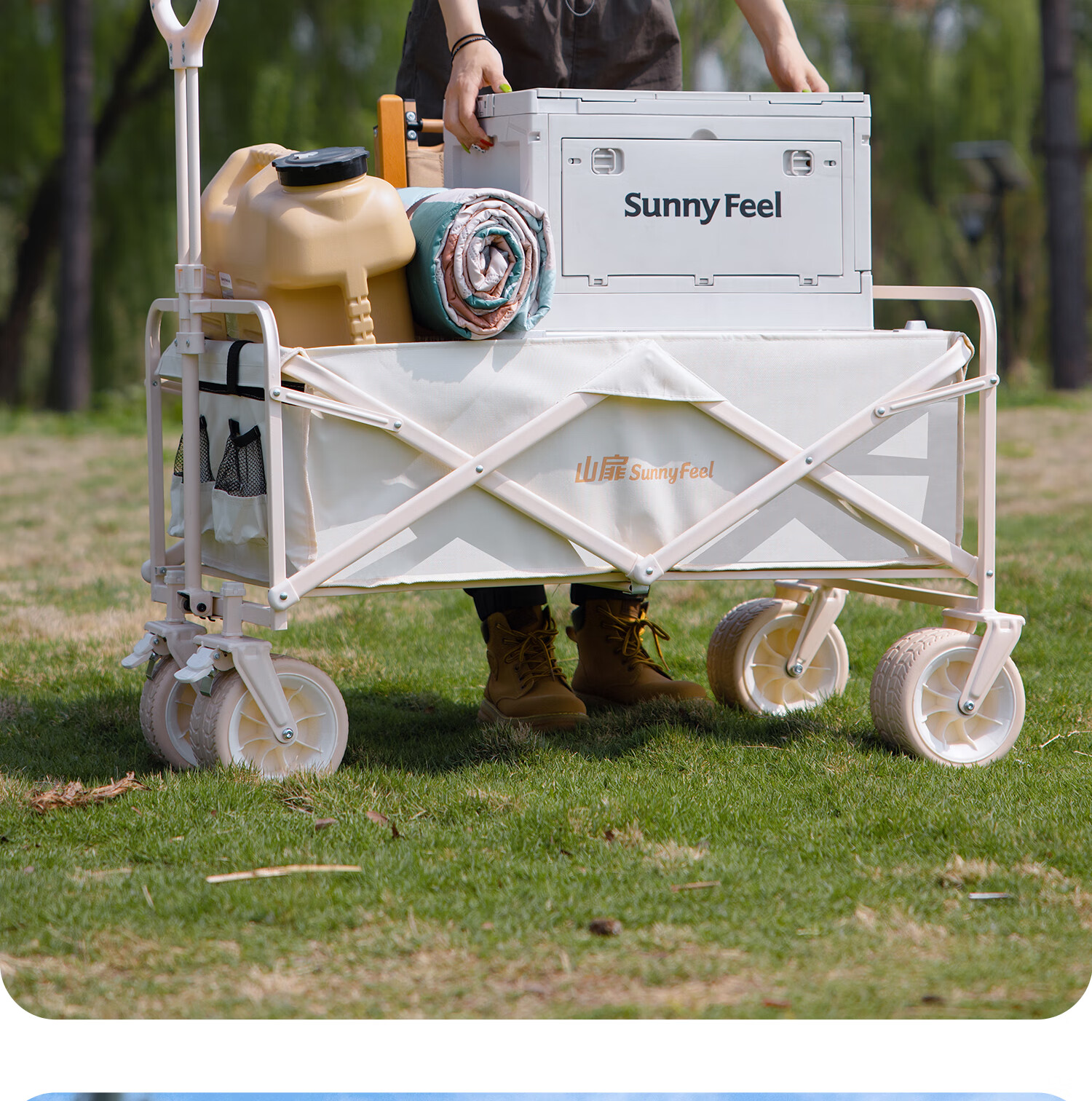 山扉山扉露营车可折叠户外拉车儿童营地小推车买菜拉年货小拖车快递车 坦克款卡其色【7cm发泡轮】