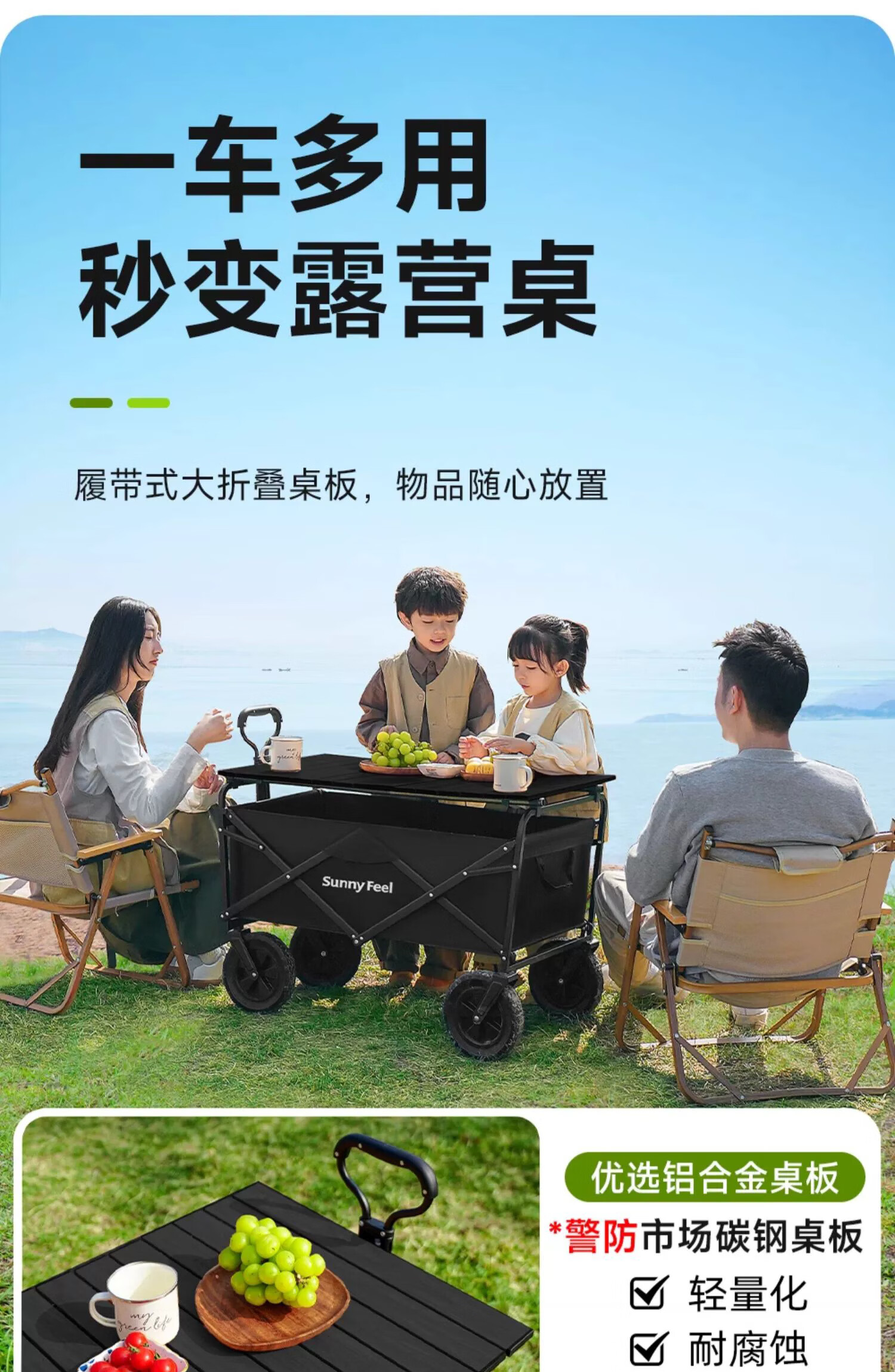 疆屿露营车野营户外折叠手推车野餐摆摊拖斗车儿童可躺聚拢营地车