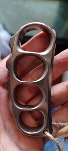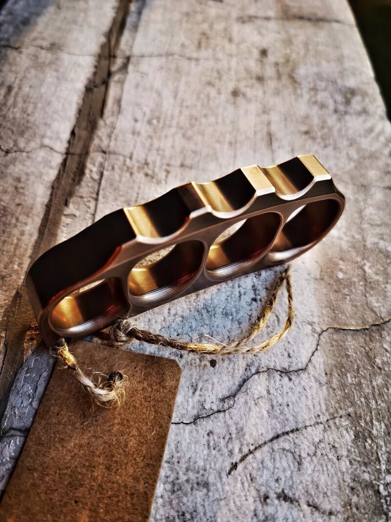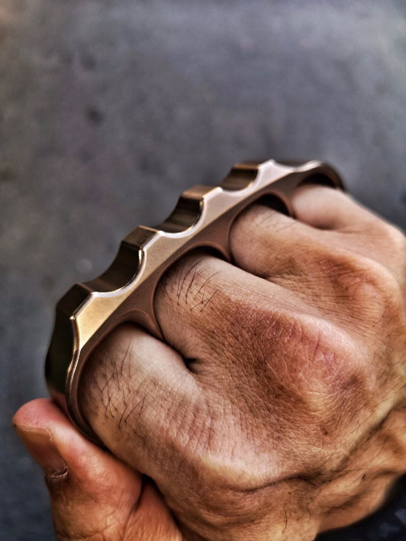 选购说明:钛合金款轻便硬度高,永不生锈,随身把玩手感好,级推荐。青铜款手感厚重,由于比较重不太适合随身携带,适合收藏,而且铜器日久见韵味。透明PC和碳纤维款相当轻,过安检毫无鸭梨,强度作为防卫也是完全够用的。
