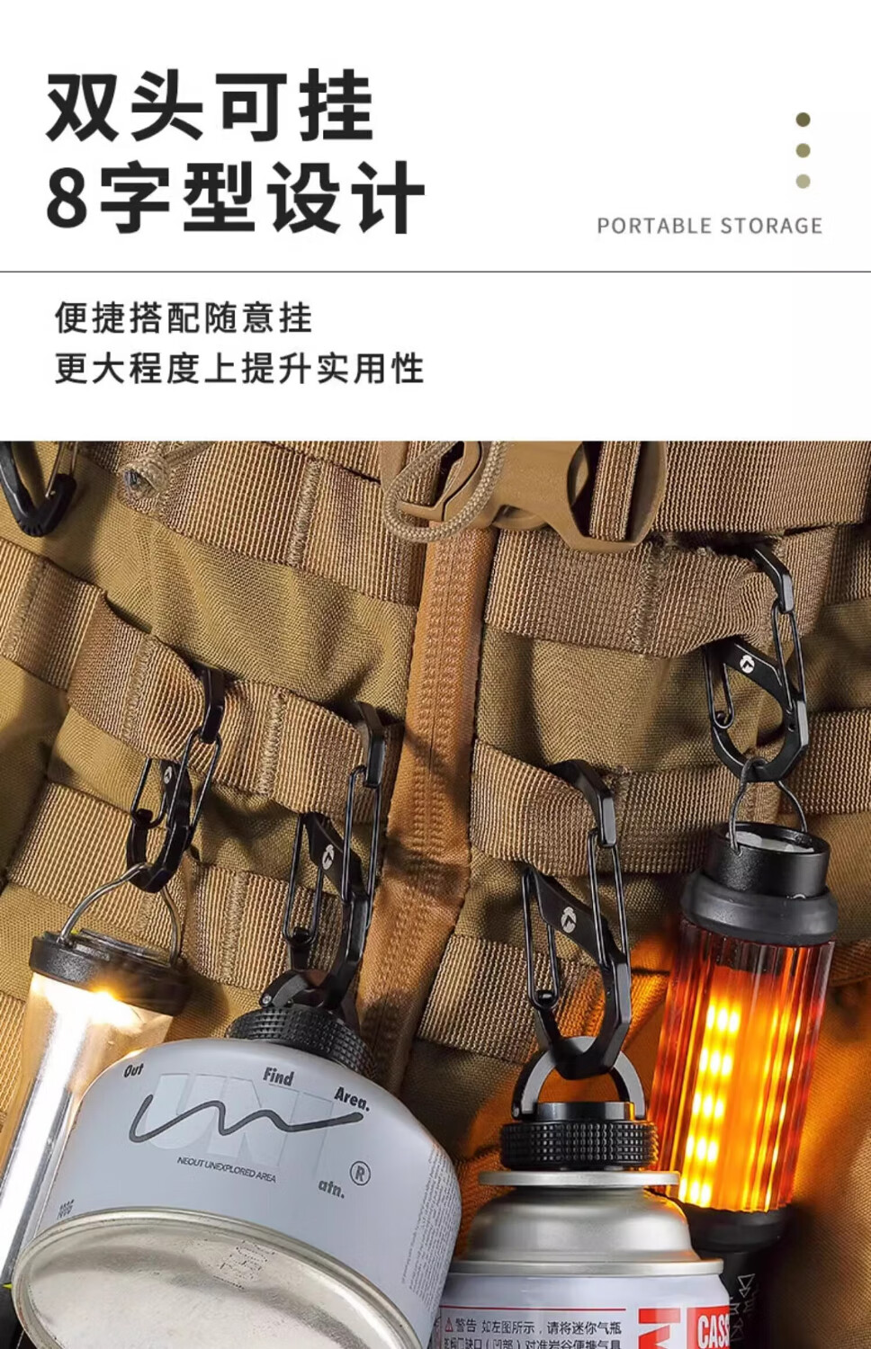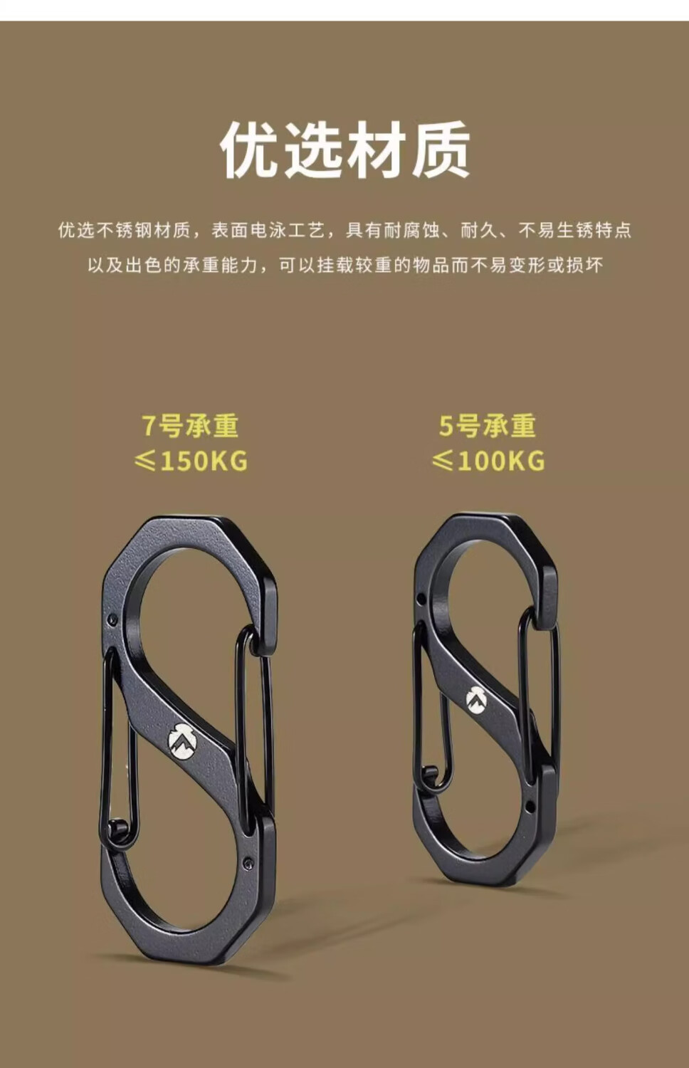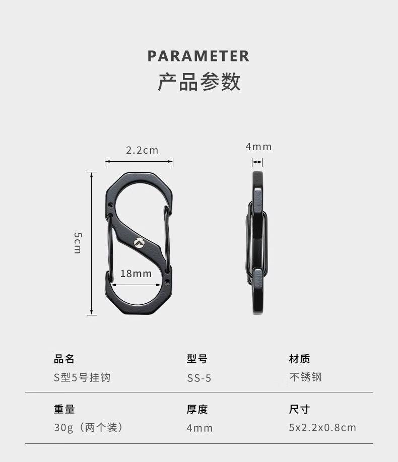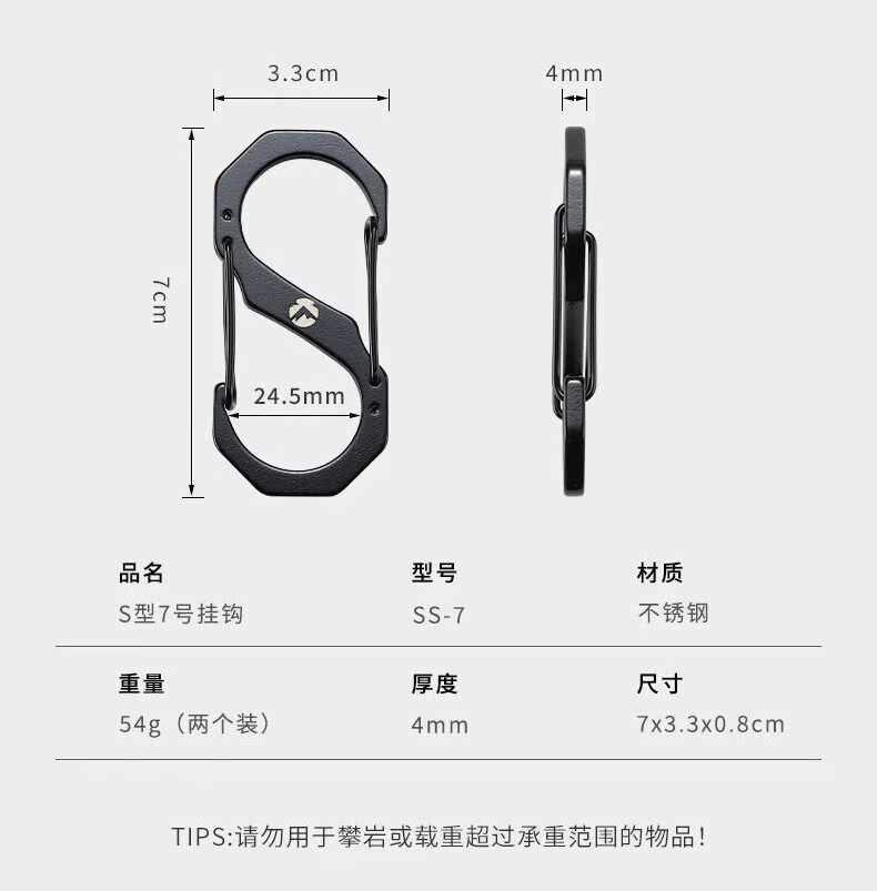 CAMPINGMOON柯曼S型不锈钢挂扣8字扣登山背包扣快挂钥匙扣户外水壶挂钩万能扣 【SS-7】大号挂钩2个