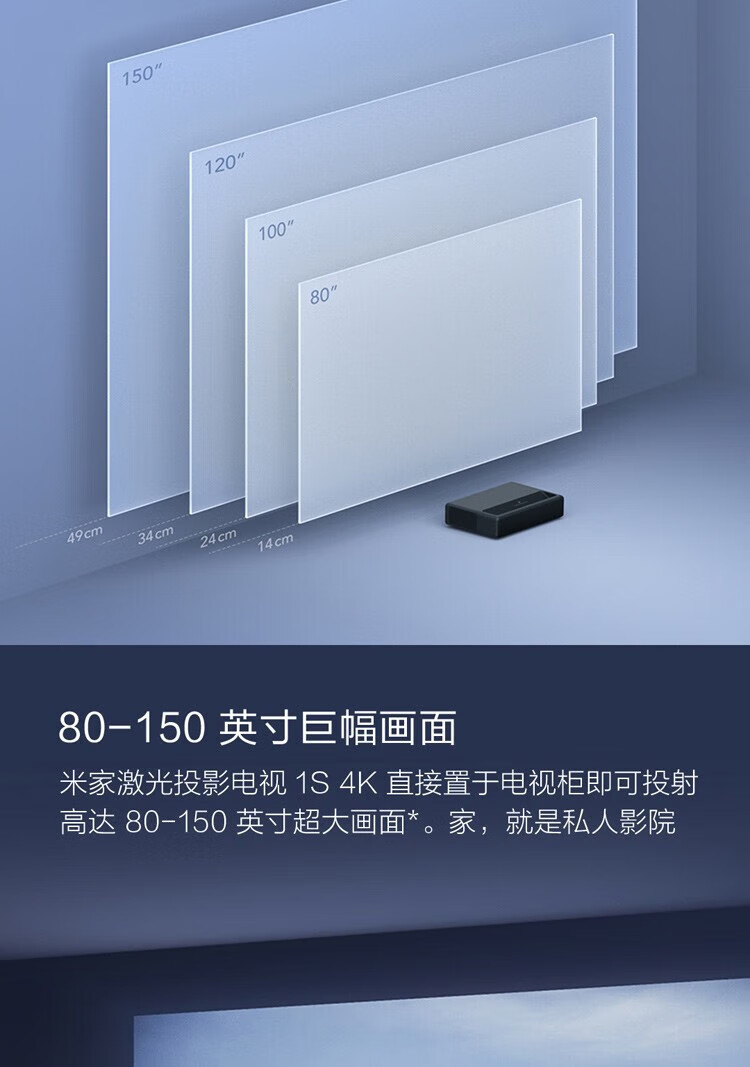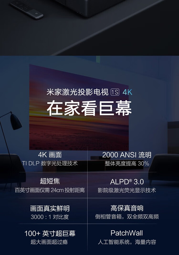 小米 米家激光投影1S 4K 投影仪家用 激光影院家庭影院 (4K画面 2000ANSI 亮度升级) 米家激光电视1S 4K【超短焦 4K享受】