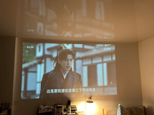 公牛20W灯泡,开灯看的,效果可以,但是因为抗光幕布特性,必须坐正中间才看的清楚,两边比较黑参照防窥屏,总之还是不错,还能叫小爱同学哦,就看晚上效果怎么样了