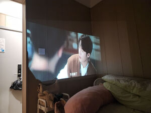 买来一起看电影的,效果不错,就是买的幕布味道比较大,放了好几天散味道