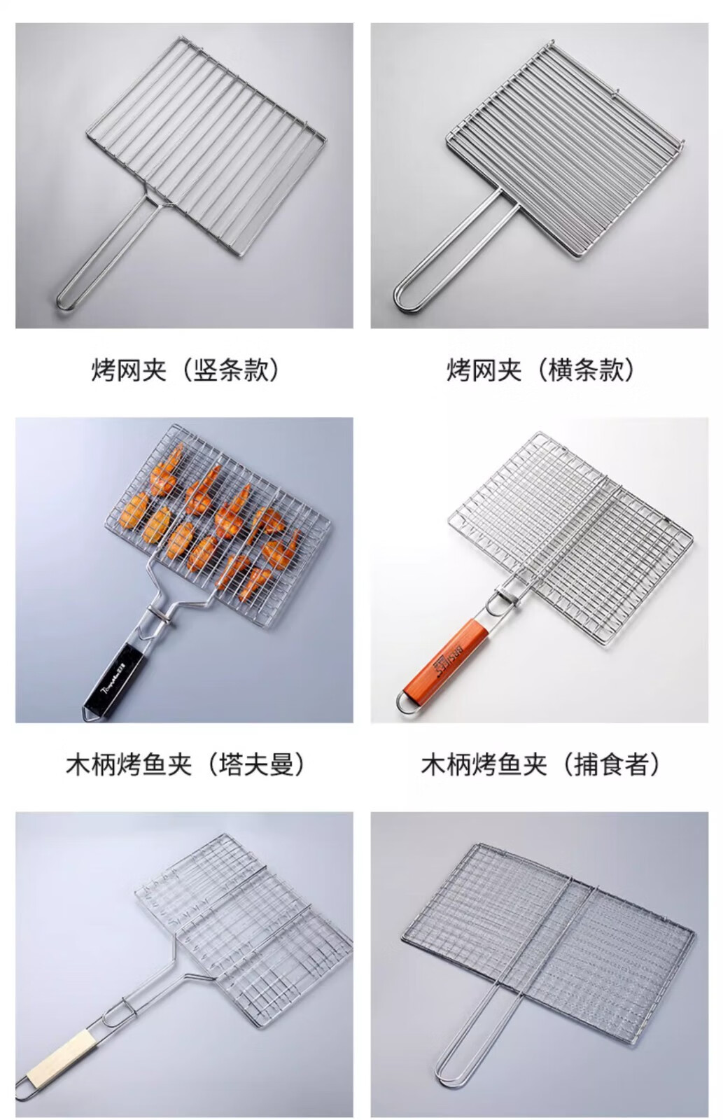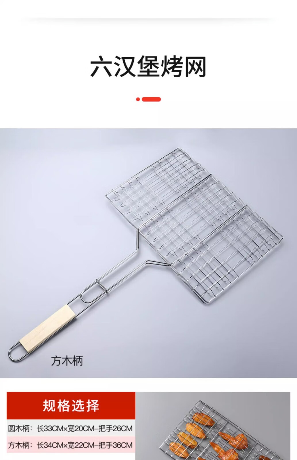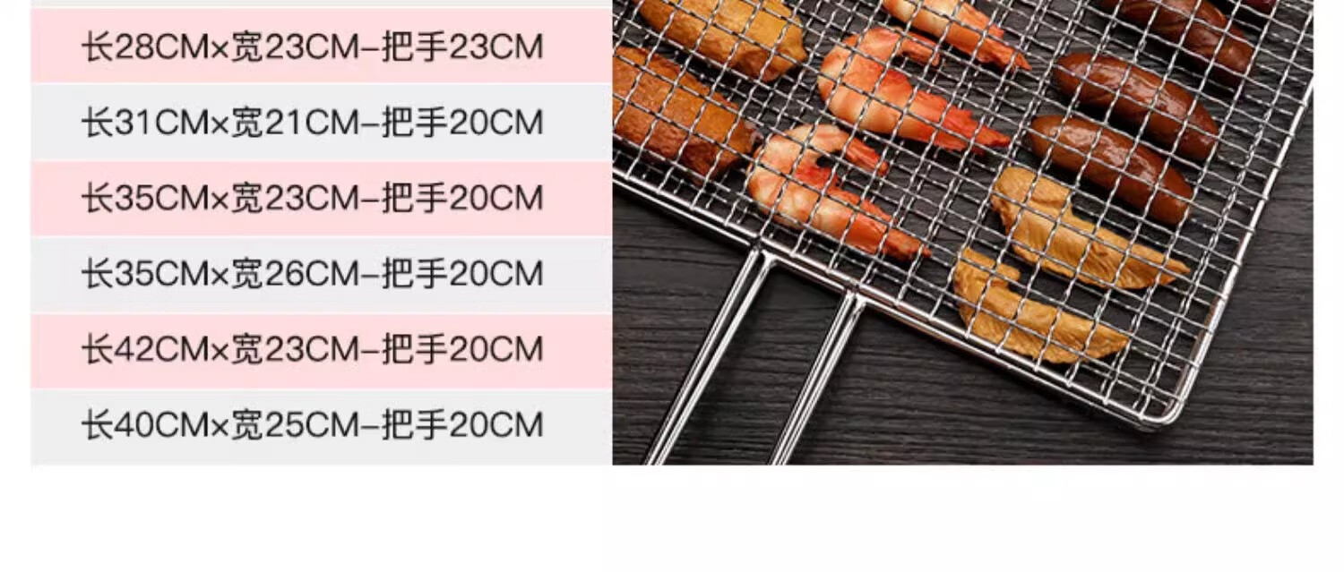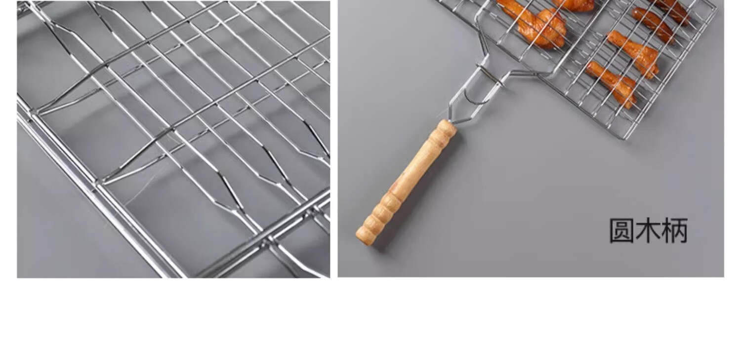 塔夫曼不锈钢烧烤网夹烤鱼夹子商用批发加粗烤肉篦子网面拍子蔬菜烧烤架 六汉堡烤网 长33cm×宽20cm