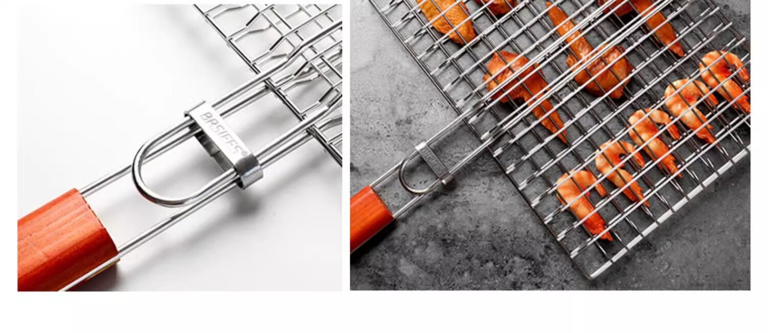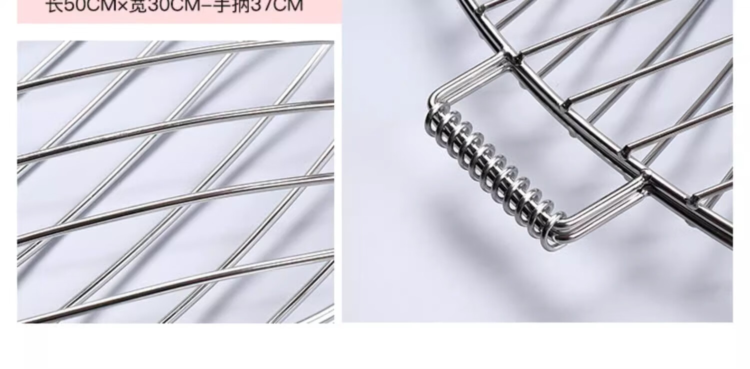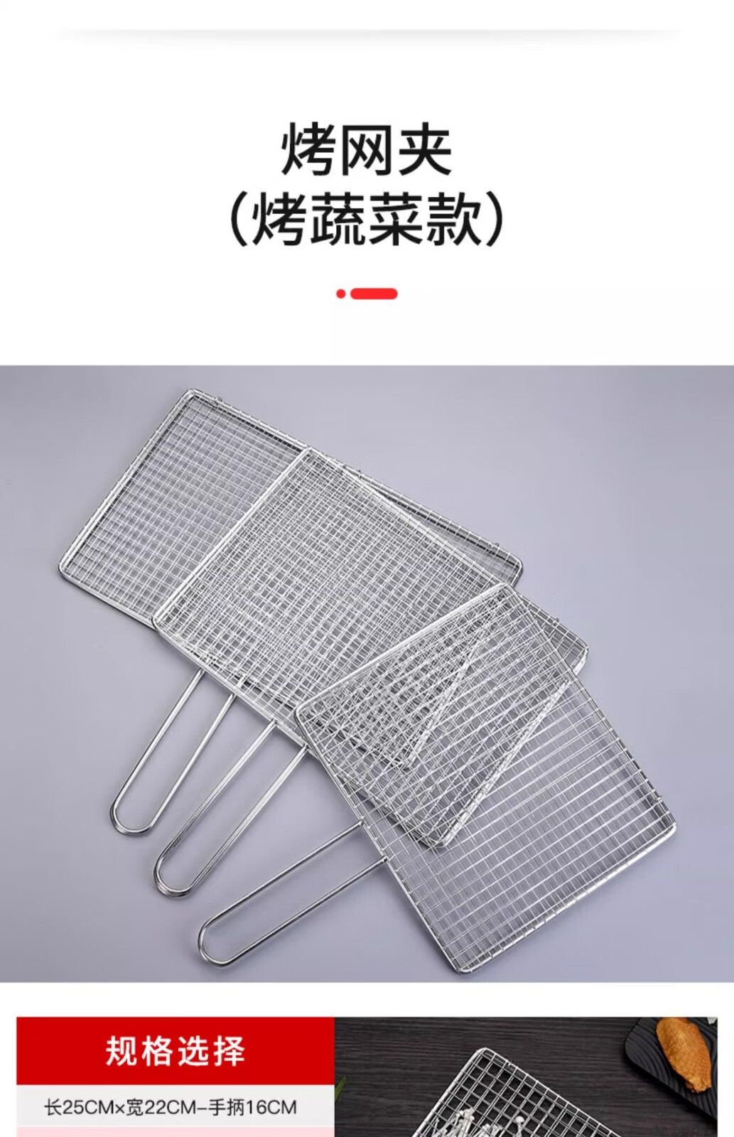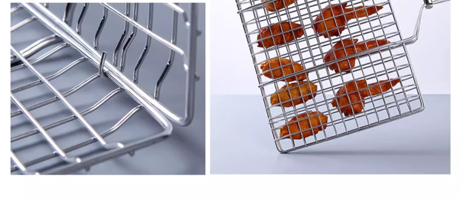 塔夫曼不锈钢烧烤网烤鱼夹蔬菜夹板加密烧烤网夹子加粗网面拍子烧烤配件 长25cm×宽18cm 加粗+304不锈钢