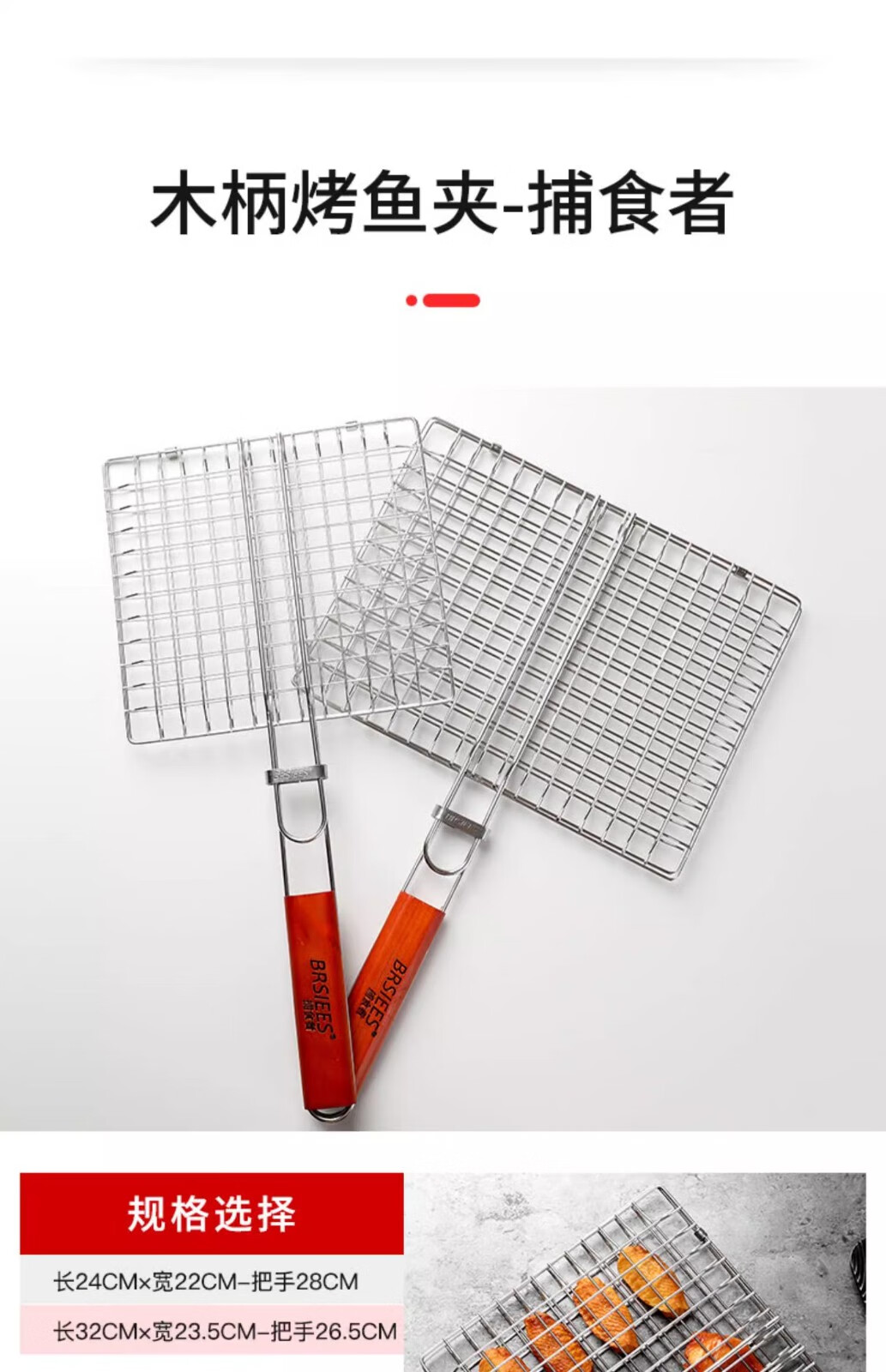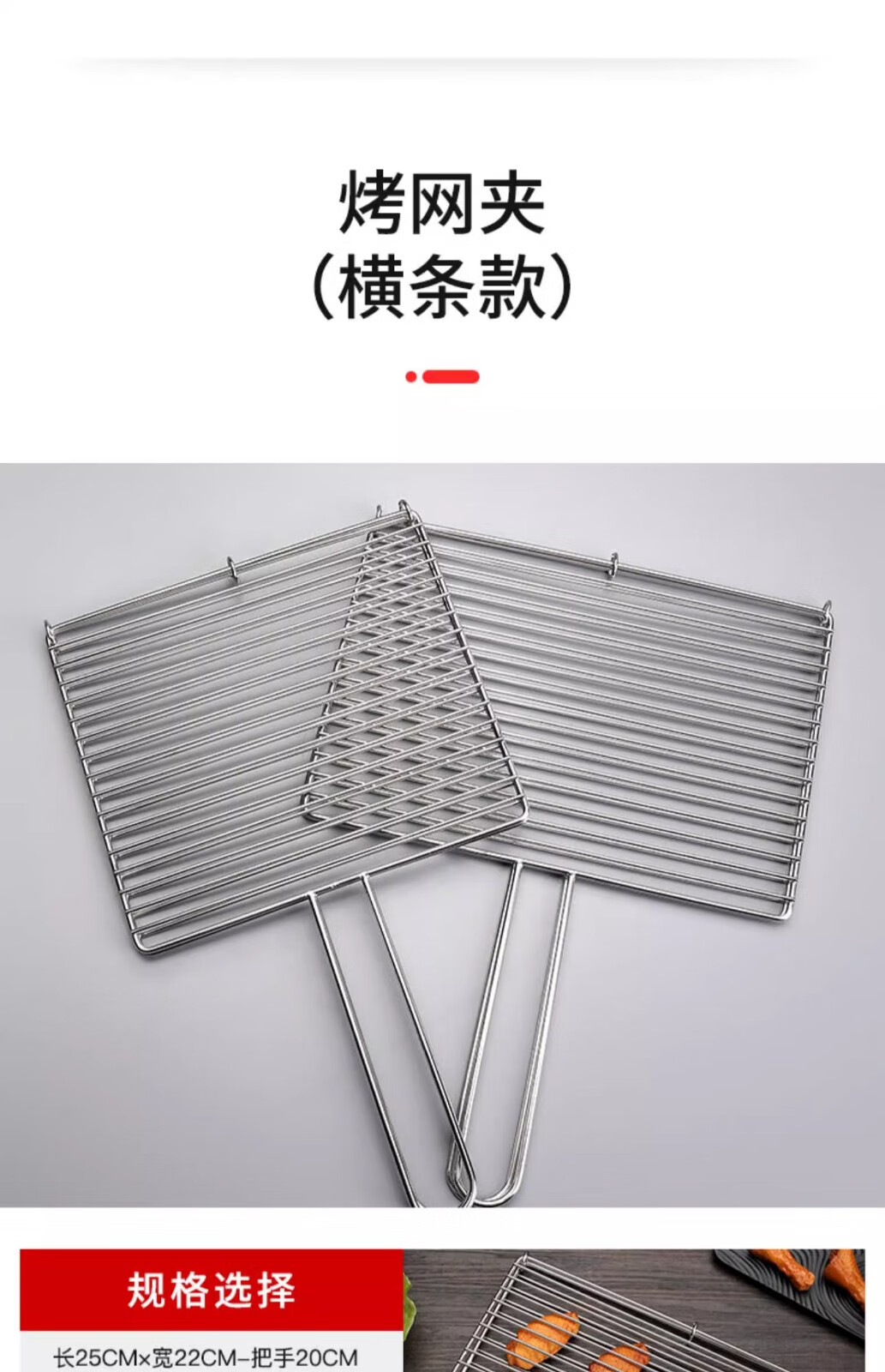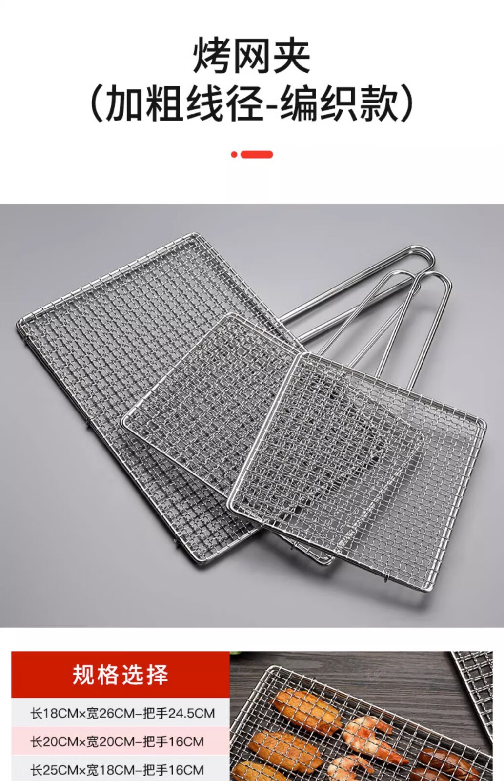 塔夫曼不锈钢烧烤网烤鱼夹蔬菜夹板加密烧烤网夹子加粗网面拍子烧烤配件 长25cm×宽18cm 加粗+304不锈钢