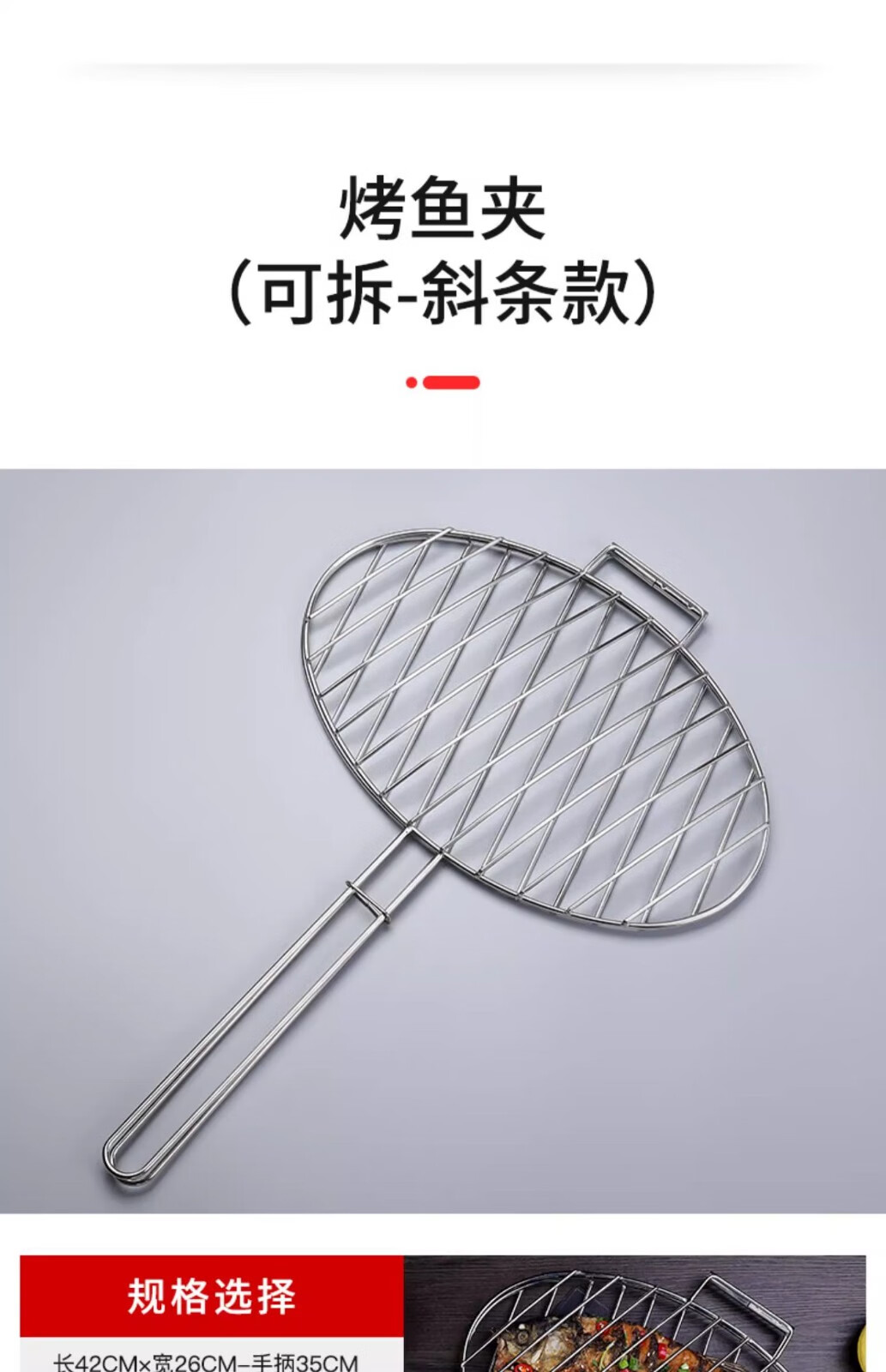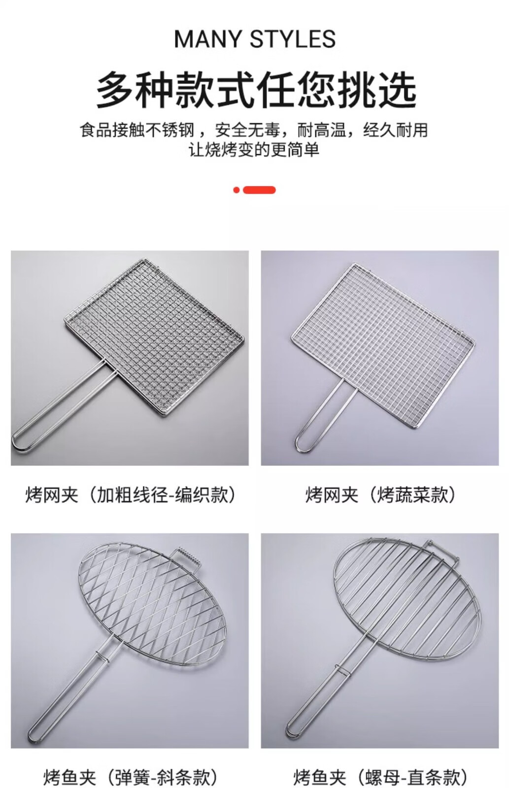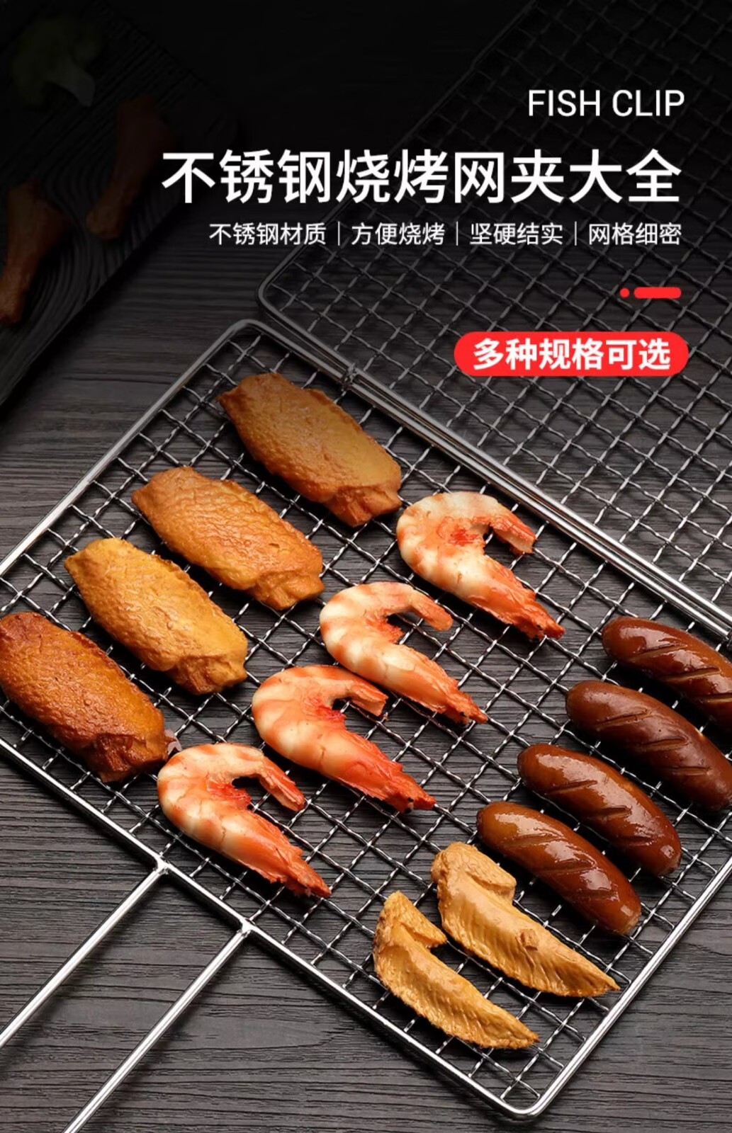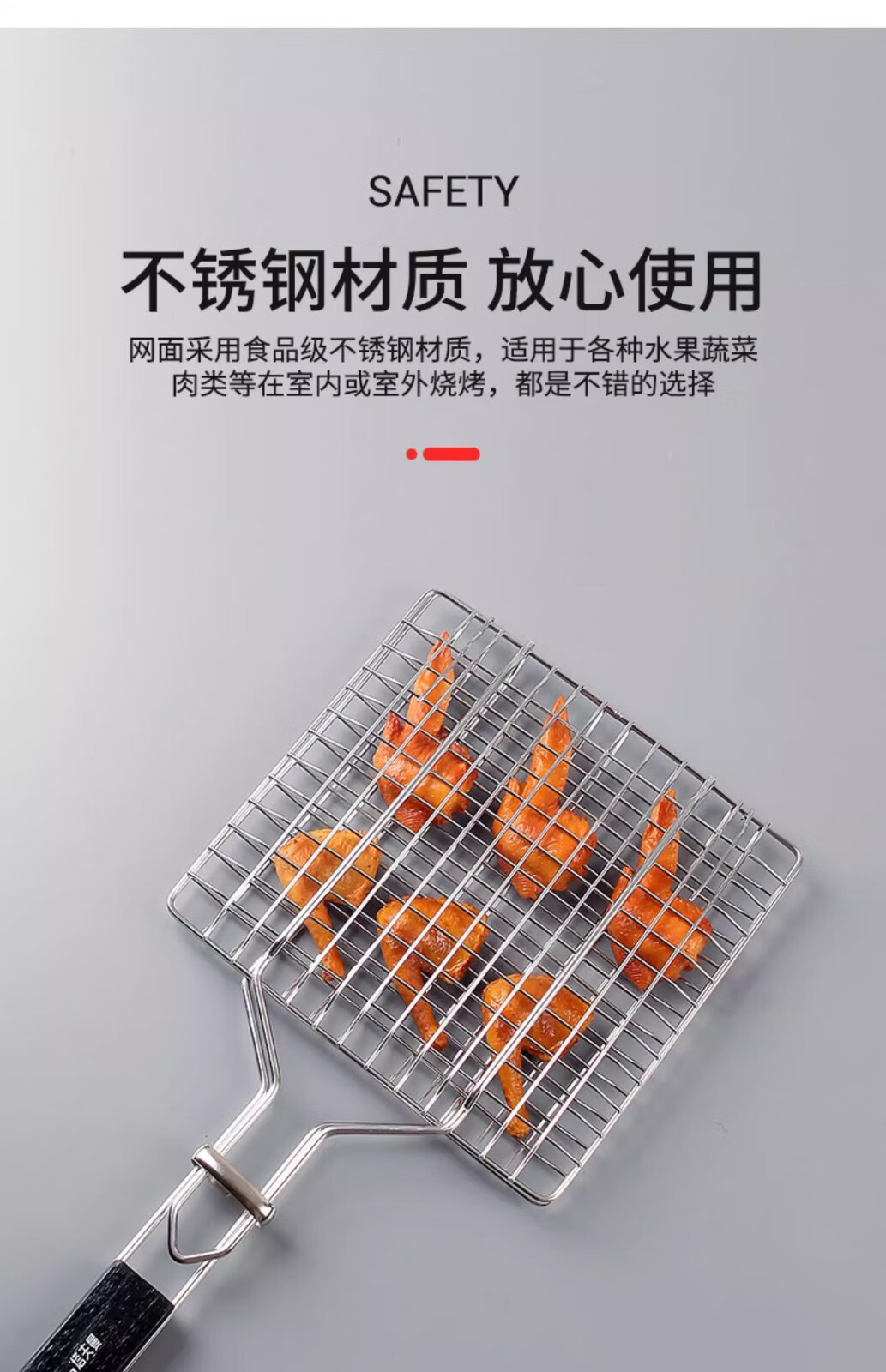 塔夫曼不锈钢烧烤网烤鱼夹蔬菜夹板加密烧烤网夹子加粗网面拍子烧烤配件 长25cm×宽18cm 加粗+304不锈钢
