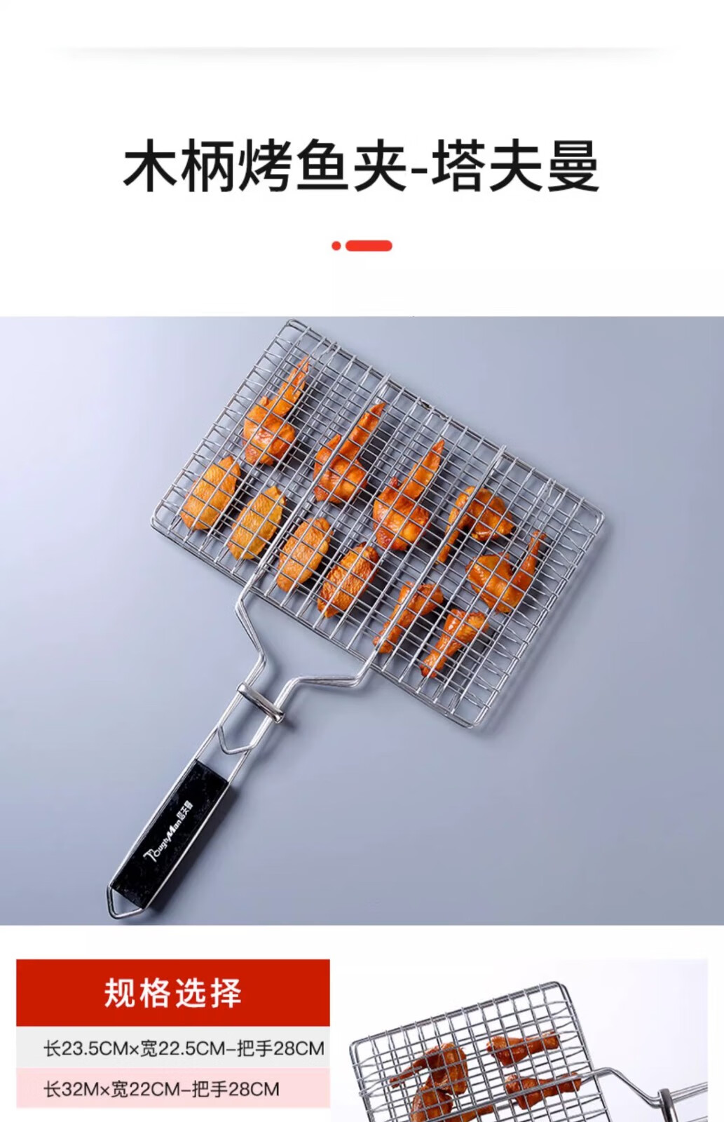塔夫曼不锈钢烤鱼夹子烤肉户外烤鱼夹板网烧烤蔬菜烧烤架网篦子工具用品 【304】长23.5cm×宽22.5cm