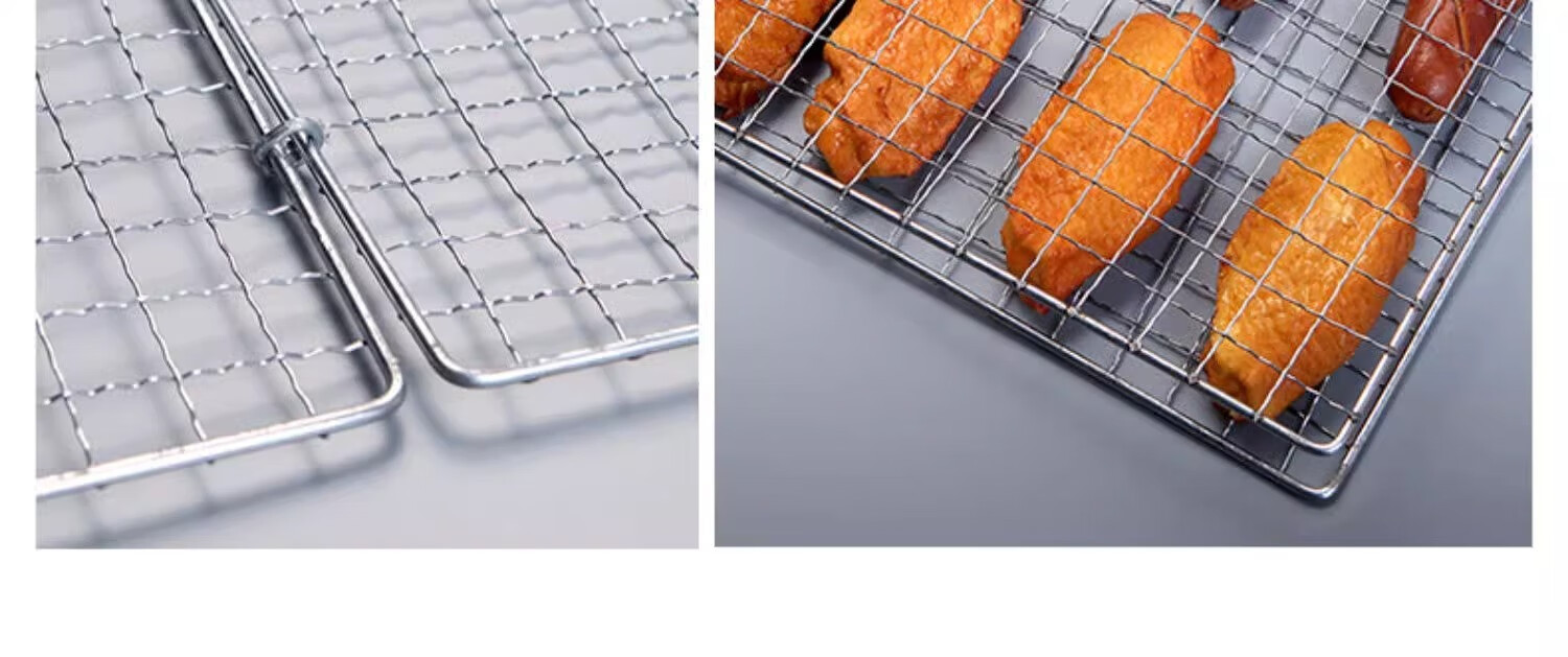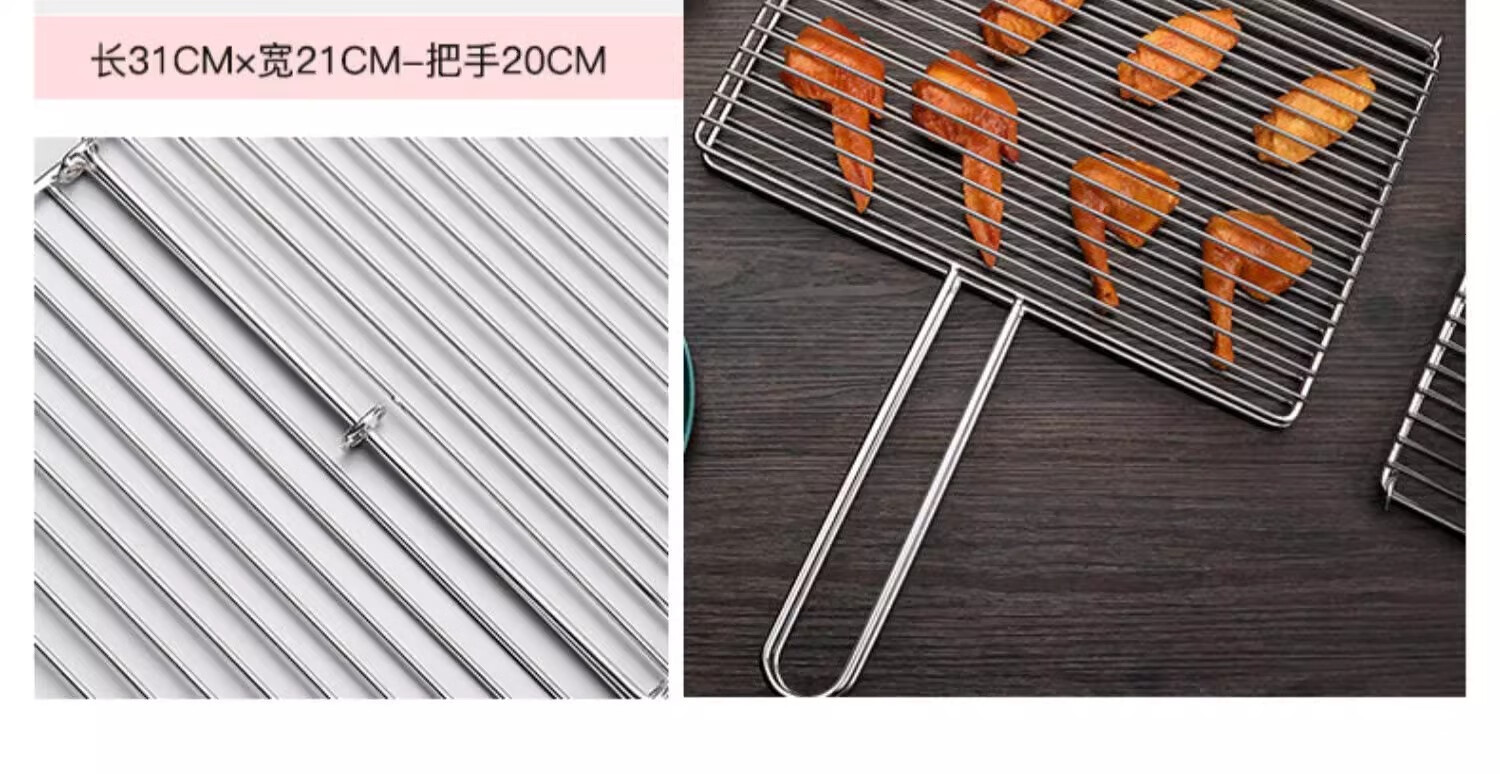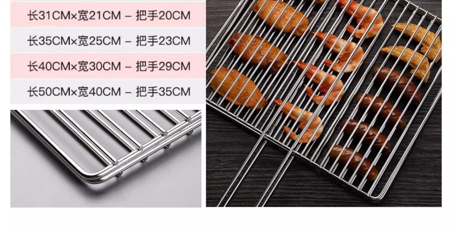 烧烤网片316不锈钢食品级网眼长方形带脚控油架油炸加厚加粗网格 带脚长20cm*宽15cm