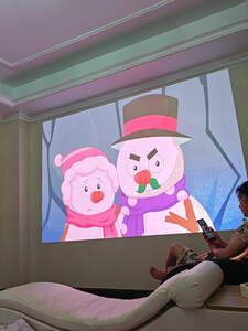 朋友推荐的这款,活动时候下单太香了,试用了几天,太清晰了,我是直接投的白墙上,躺床上看太幸福了