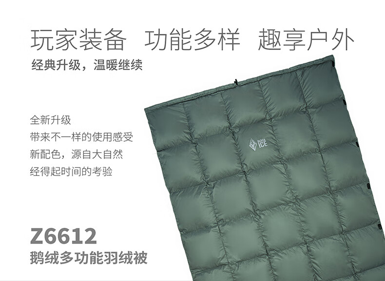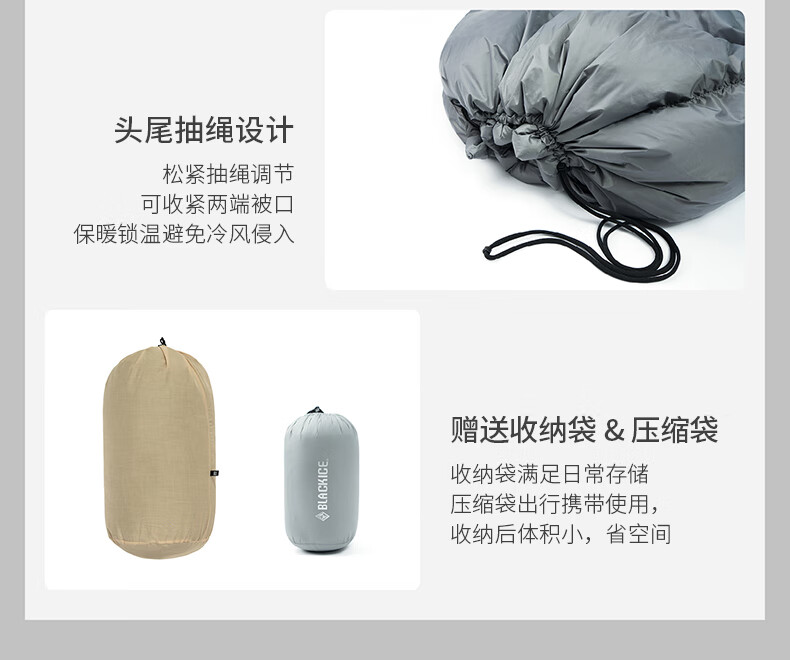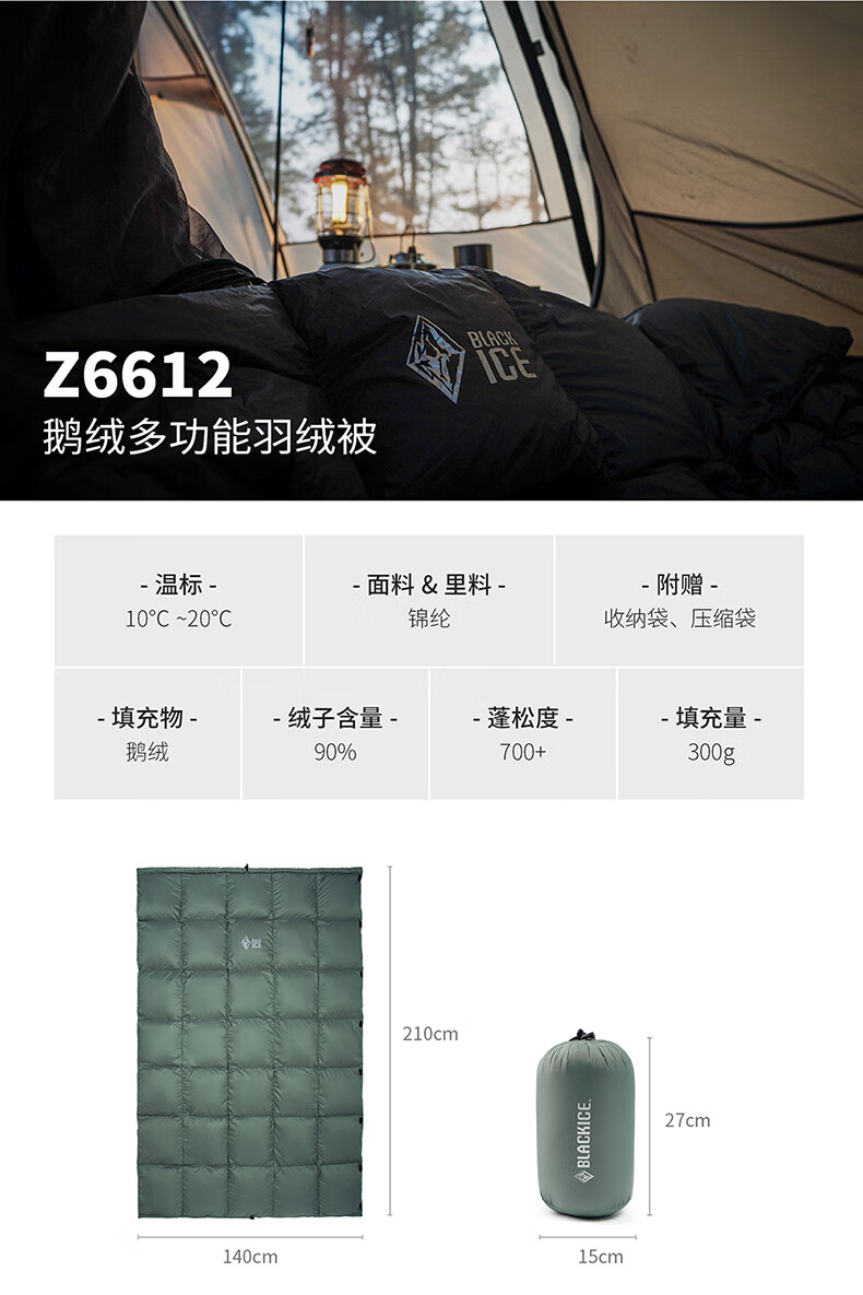 黑冰 单人冬季保暖鹅绒被 户外旅行轻量便携羽绒被Z6612 青灰