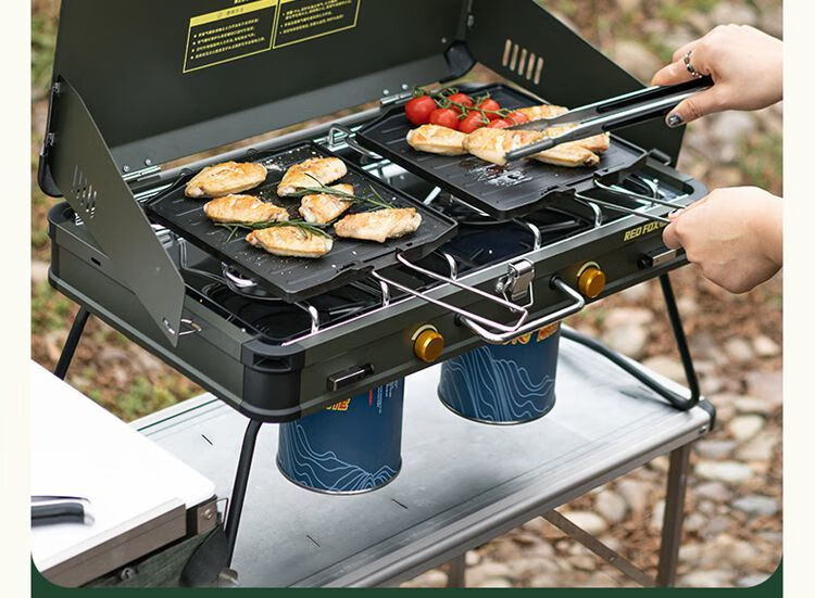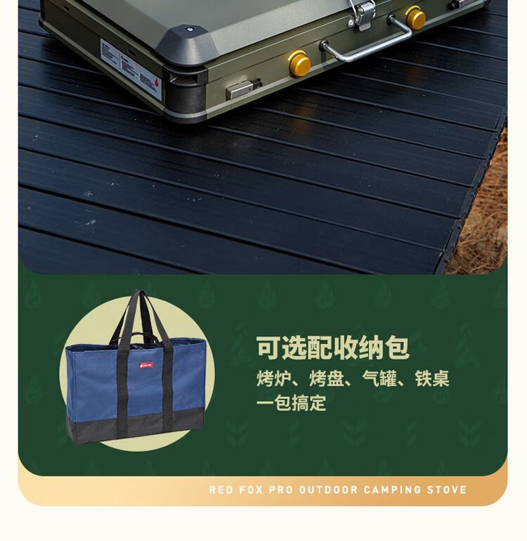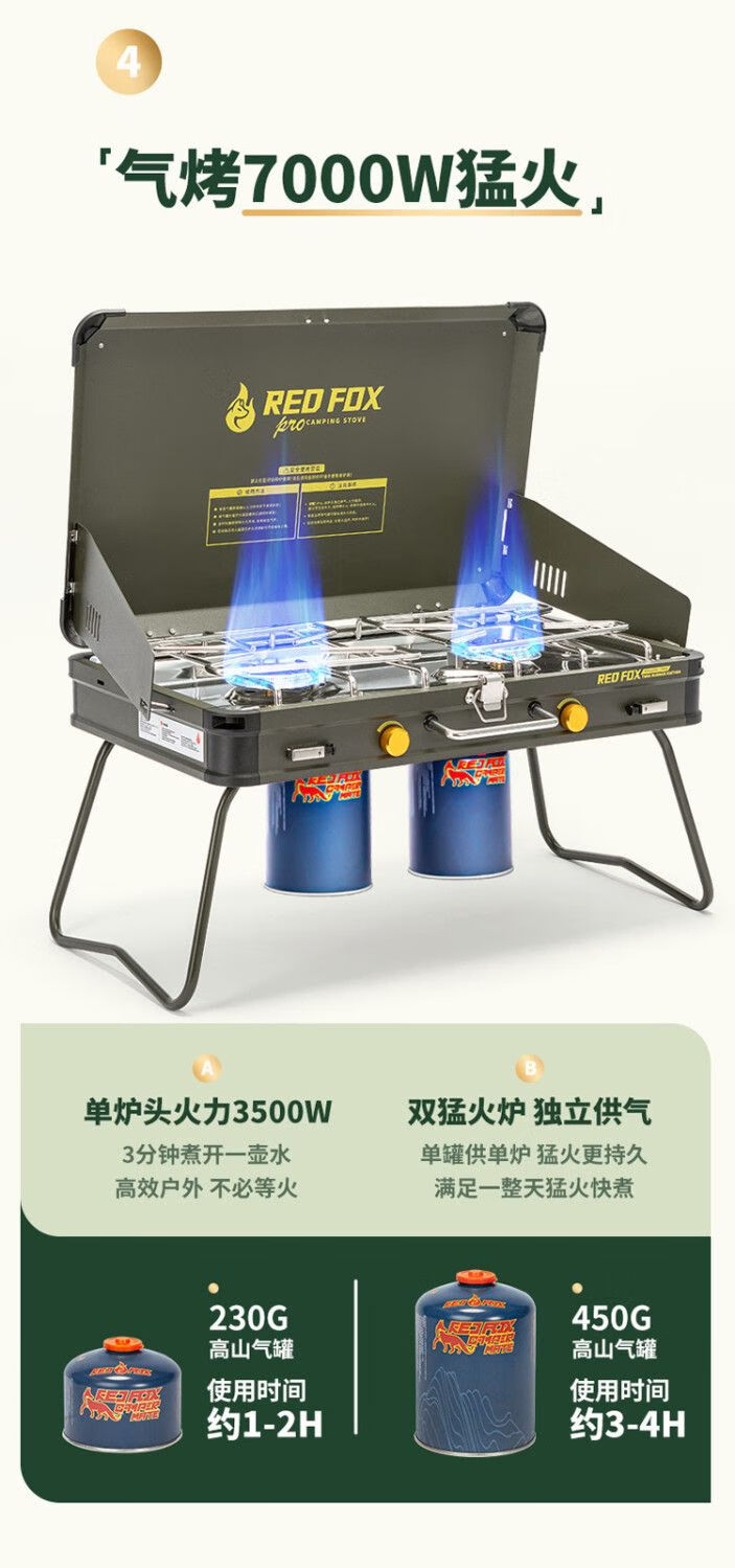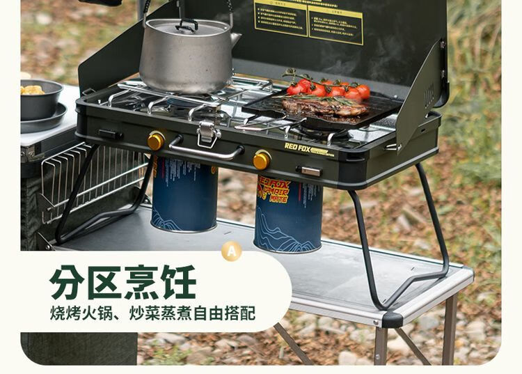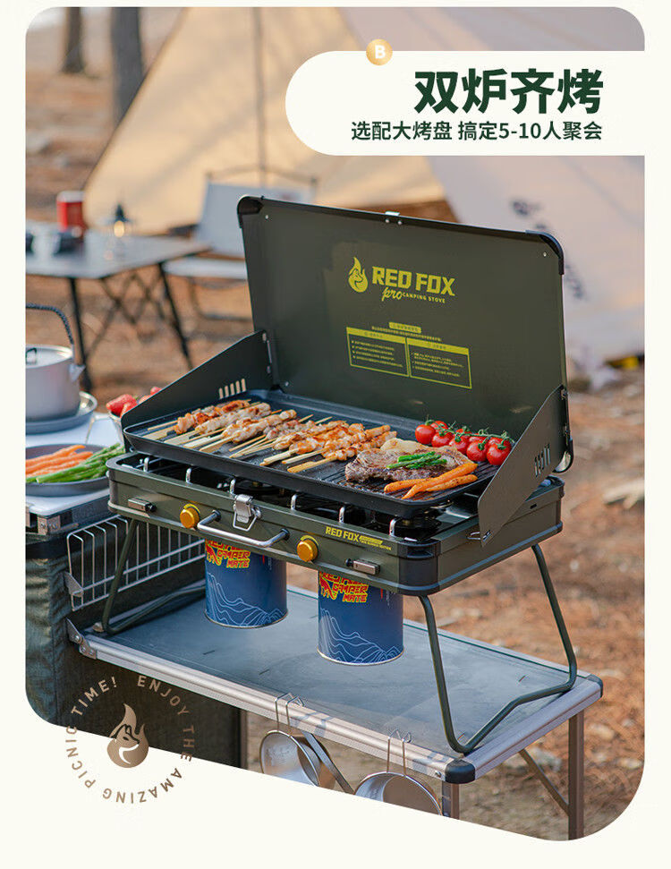 火狐RedFOX户外野炊炉具家用露营烧烤装备卡式炉烧烤炉燃气 火狐pro双头野营炉【星耀黑】罓极速發貨